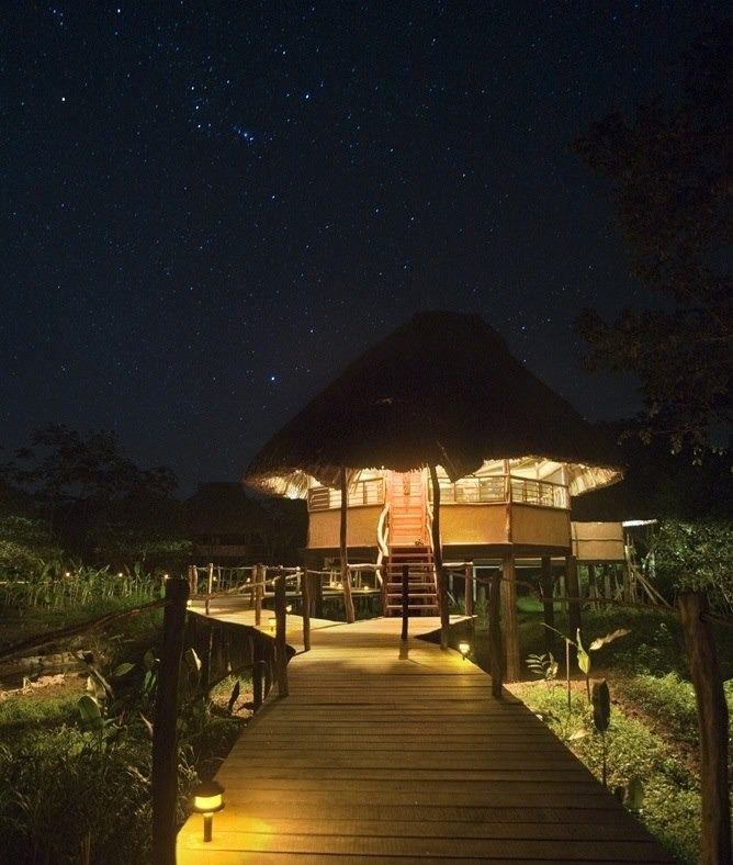 Step into the world of the Maya and explore untouched rivers and jungles for a once in a lifetime experience at Cotton Tree Lodge. Tour the rainforest and awaken your senses to the sounds of exotic birds and wildlife. Fish the flats and remote jungle rivers for snook, permit, and tarpon. Rope swing from trees along the Moho River, paddle upstream in a wooden dugout canoe, kayak in the jungle, or maybe visit the many Mayan ruins in the area. Take a 30 foot jump from a waterfall in the morning and make your own chocolate bars in the afternoon. Visit the small town of Punta Gorda on Market day and see the vast array of local fruits, vegetables and fish. The lodge is totally off grid, using mainly solar power. They raise fresh crops, harvest local wild fruits, and even tend their own flocks of chicken, pig, and goats. Tour a local Cacao farm or taste the flavors of culture at the Belize Spice Farm. Your cabanas are nested 16 feet above the ground and perched along the slow moving Moho River. After you have enjoyed an evening gourmet meal prepared by our chef fall asleep to the sounds of the howler monkeys and the sound of the jungle. This and more awaits you at your exclusive private jungle lodge experience!