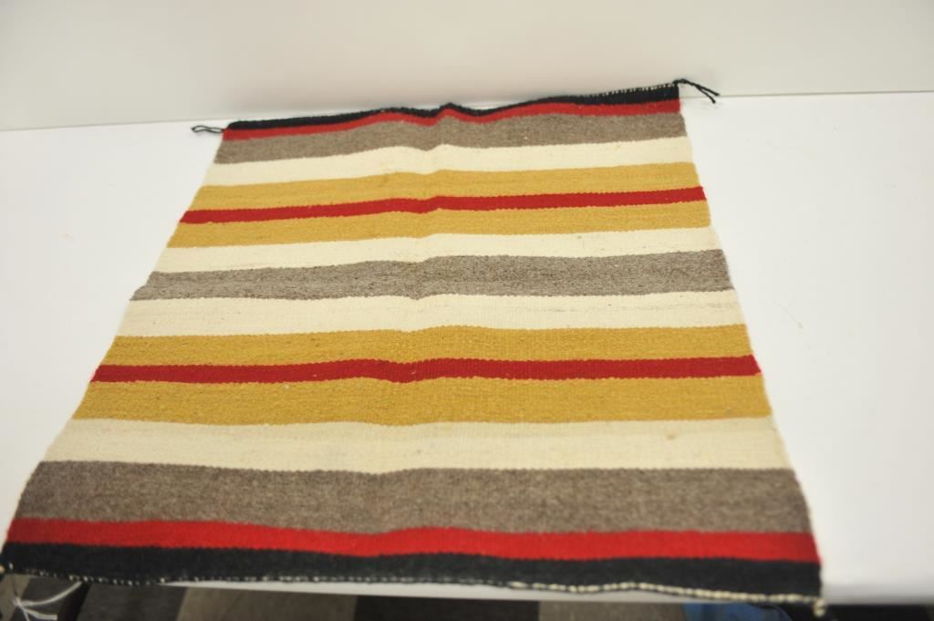 Small striped Navajo blanket; approximately 24” x 22” overall and in nice condition. Est.: $75-$150.