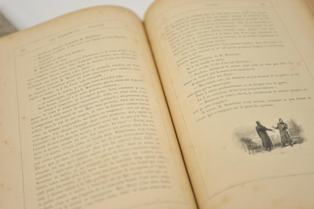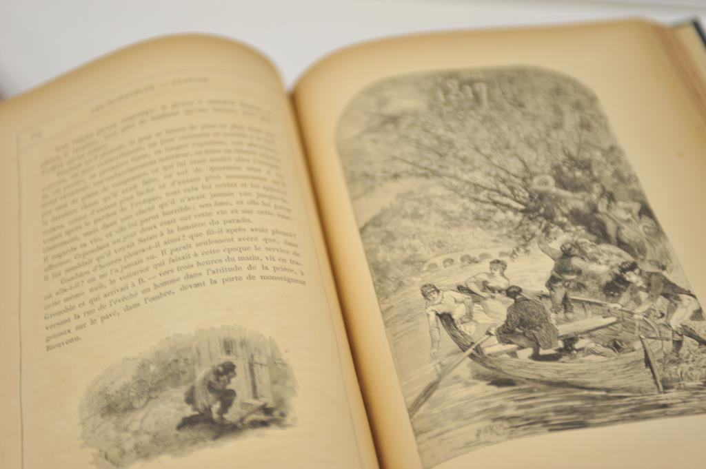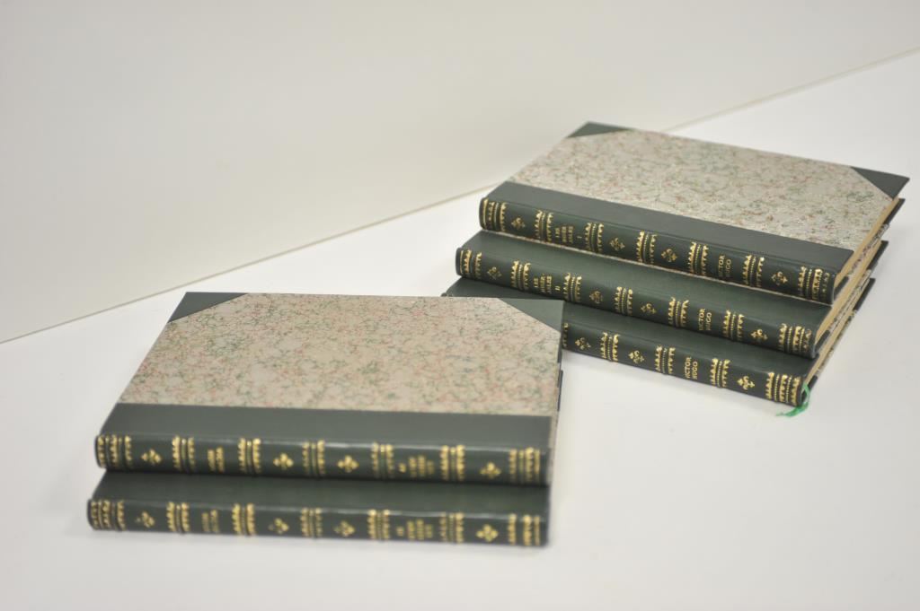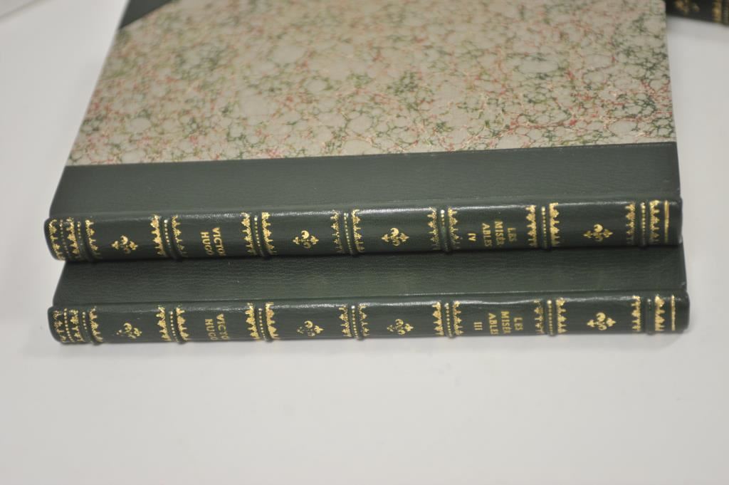 Volumes I thru V of the Novelle Edition Illustree (1st edition) of Victor Hugo’s classic work “Les Miserables” (in French); finely re-bound with overall good interior pages in volumes displaying page edge toning and some minor scattered foxing (not affecting content of pages). Est.: $4,000-$5,000.