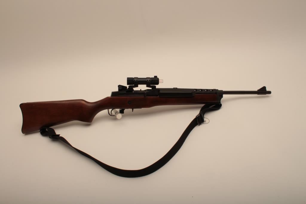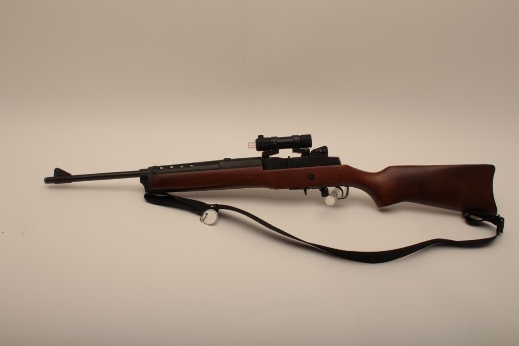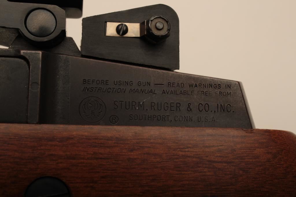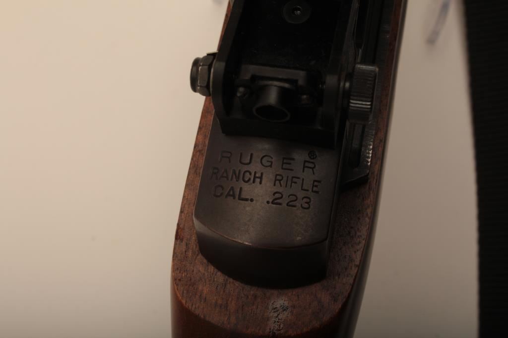 Ruger Ranch rifle in .223 caliber with scope added and fabric sling, S/N 188-46316. Very good plus to almost fine used condition. 90%-95%. Minor signs of firing and use. No mag. (Modern) Est.: $400-$800