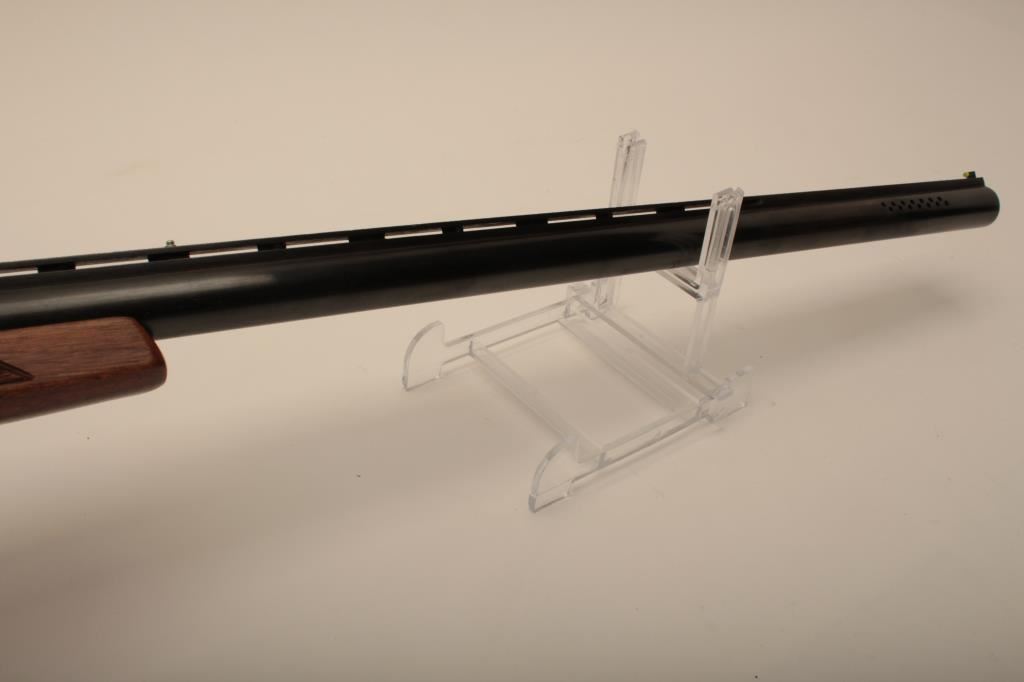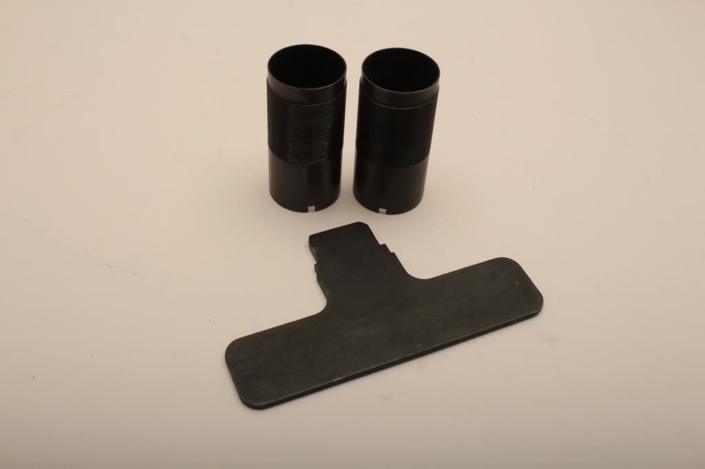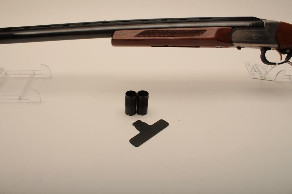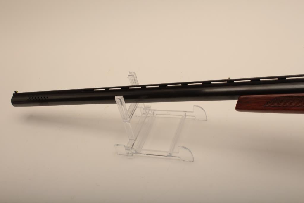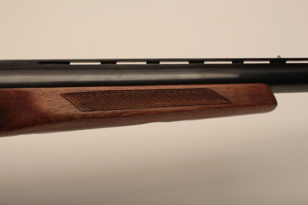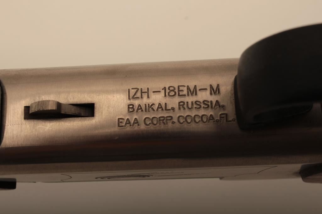 Baikal IZH-18EM-M single shot shotgun, 12 gauge, Serial #04065910B. The shotgun is in fine overall condition with a 29 ½” ported barrel with a full-length ventilated rib and steel bead front sight. The barrel retains nearly all of its blue finish while the receiver is finished in the white. The checkered wood stocks are in very good condition with light handling marks. The butt stock ends with a rubber recoil pad providing a 14” LOP. The lot includes a choke wrench and both modified and improved cylinder choke tubes. The bore is good, the action is crisp and the markings are sharp. Est.: $200-$400. (Modern).