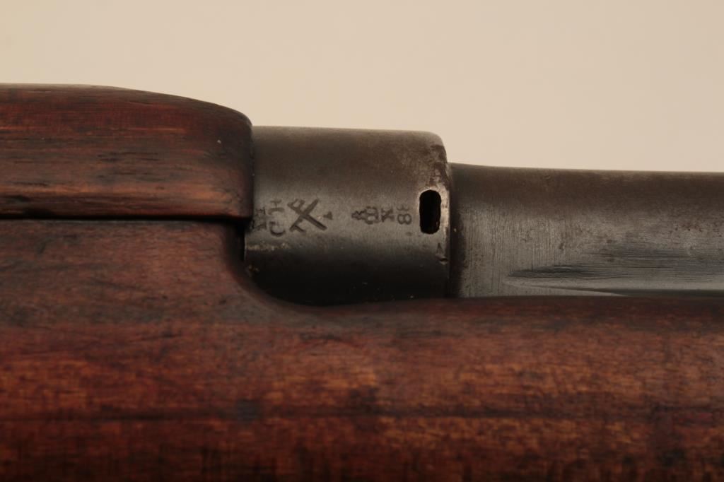 British SMLE III Ishapore bolt action rifle, modified to single shot smooth bore of approximately .40 caliber; wood stock, S/N L 45477; overall fair condition as modified; two old repairs to rear of butt stock at brass butt plate; crisp action, fair bore. (C&R). Est.: $175-$350.