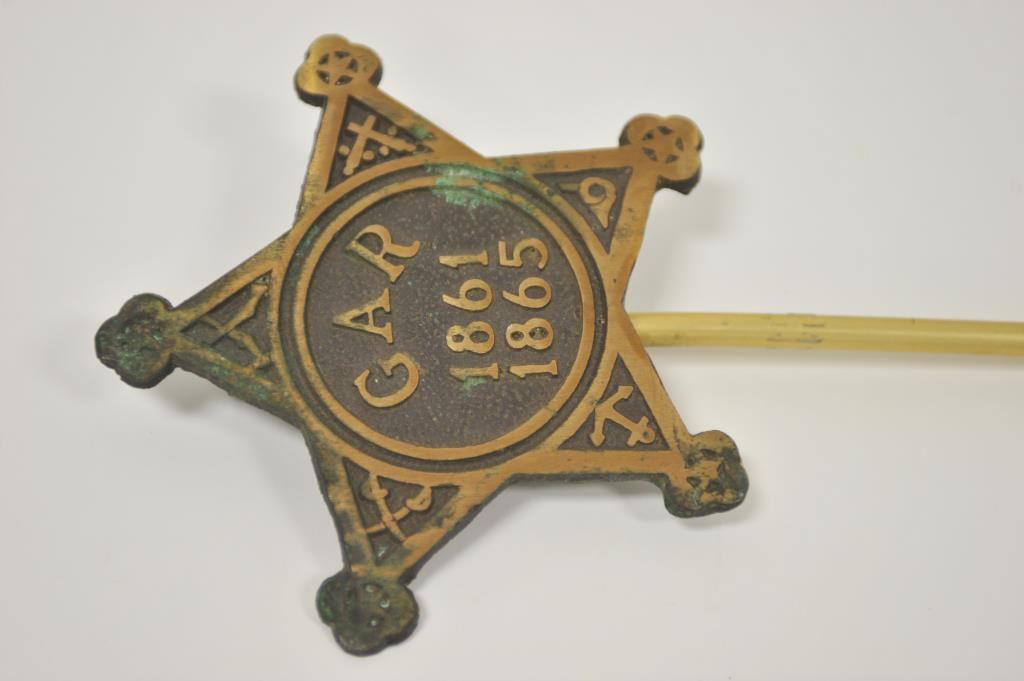 GAR Union Civil War grave marker made by the Emblem Flag Co, Bristol Penn, cast iron, contemorary. In very good condition. Est. $50-100