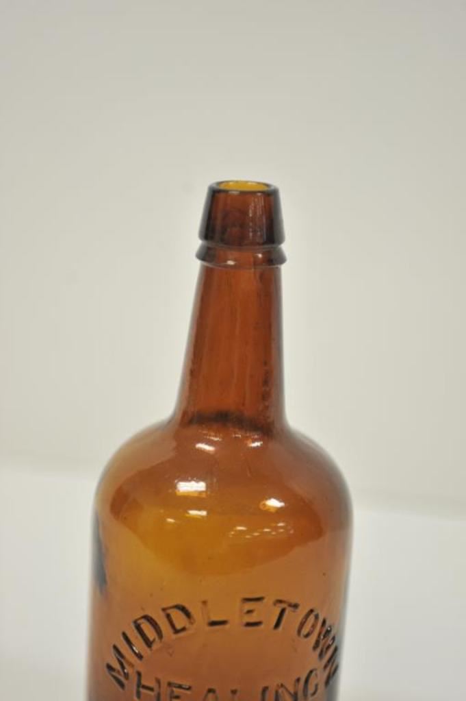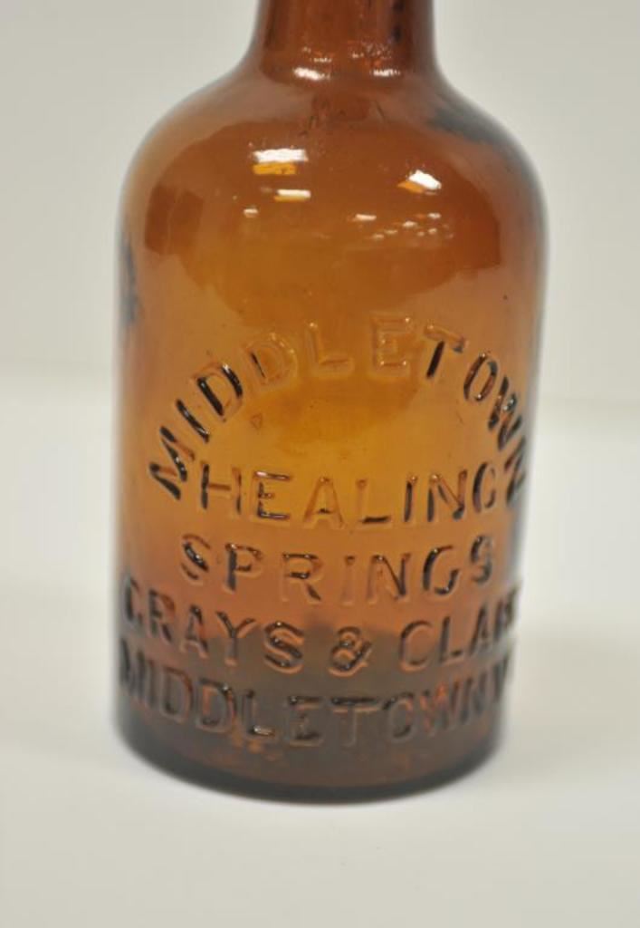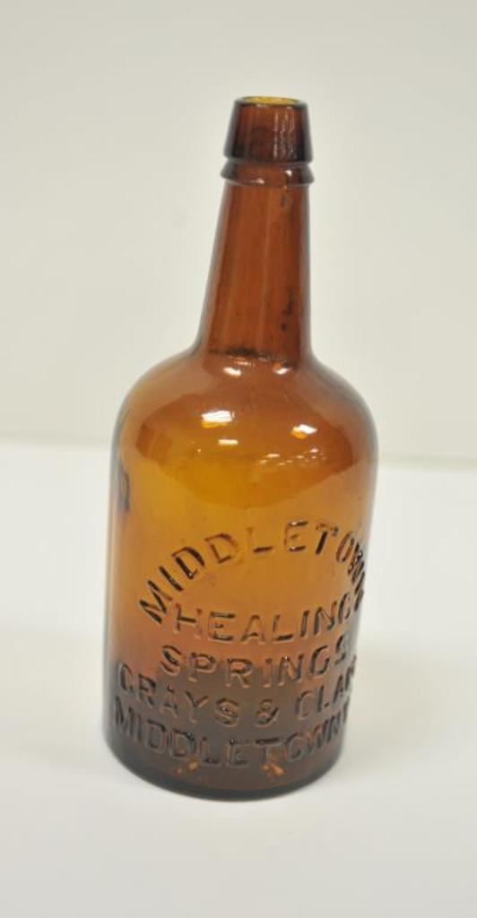 Amber glass bottle marked “Middletown Healing Springs/Grays & Clark/Middletown, VT”; approximately 9.5” in height. Est.: $100-$200.