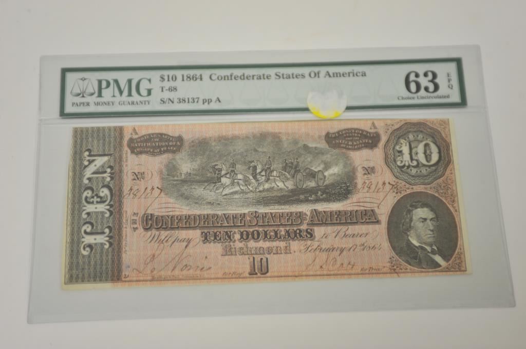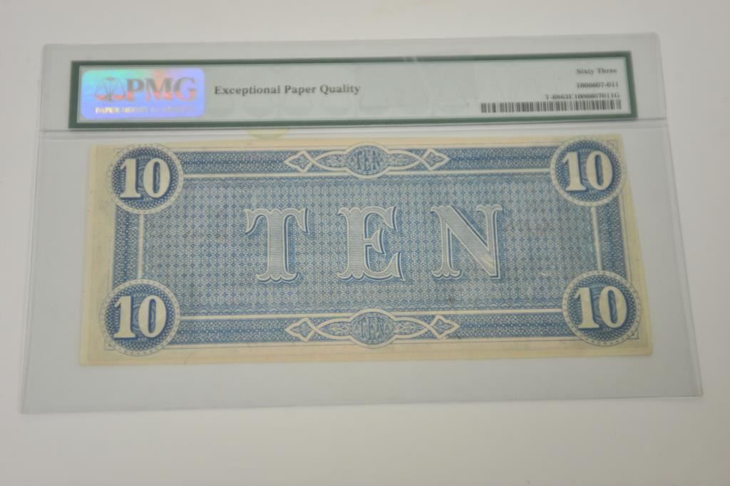 C.S.A. $10 Note; graded by PMG as “Choice Uncirculated”; in protective sleeve. Est.: $200-$400.