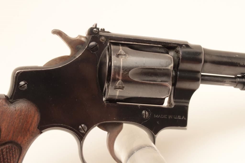 Smith & Wesson Bekeart-style 5 screw hand ejector DA target revolver, .22LR caliber, 6” barrel, blued finish, checkered target extended wood grips, S/N 384231; majority of blued finish remains with some holster wear, crisp action, sharp markings, bore may clean to good, very good grips. (C&R/NO PPT). Est.: $500-$1,000.