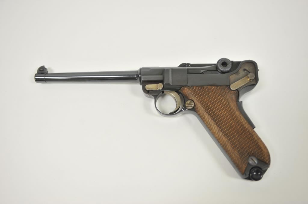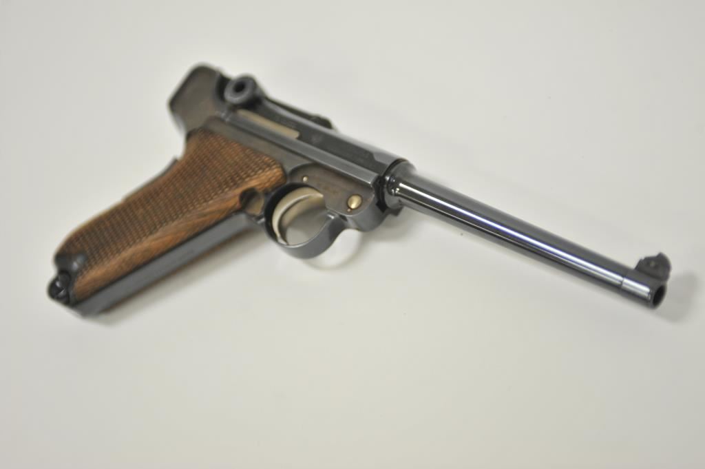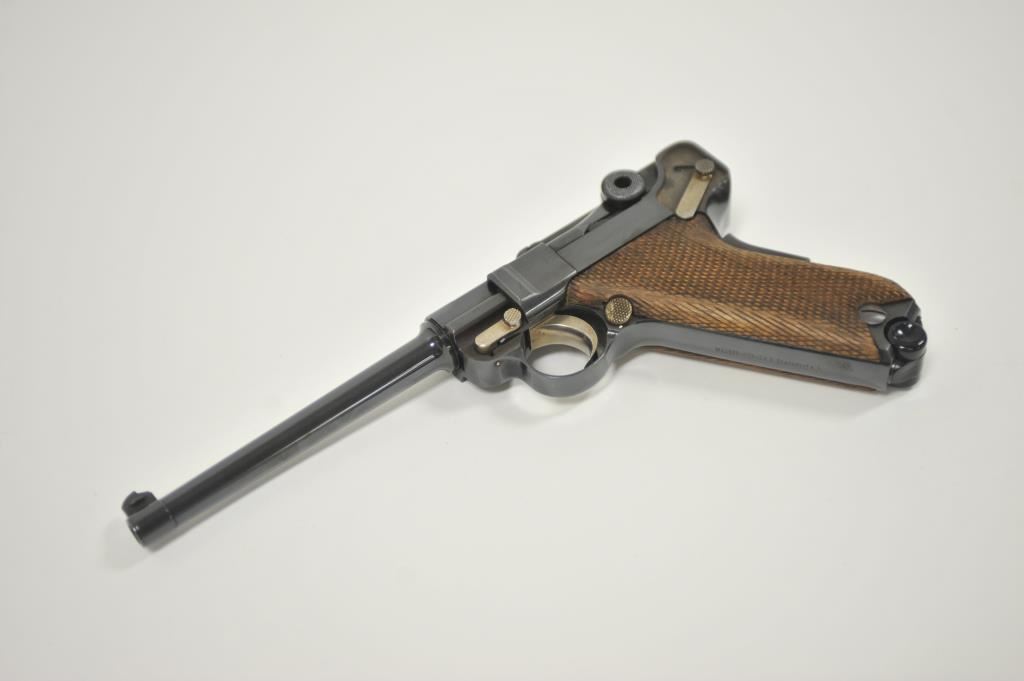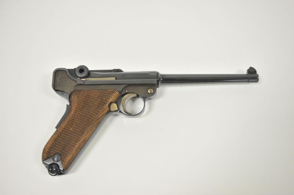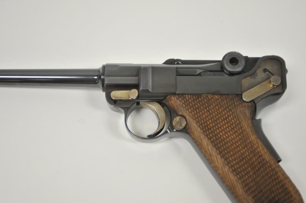 Mauser Oberndorf American Eagle by Interarms semi-automatic pistol, .30 Luger caliber, 6” barrel, blued finish, checkered wood grips, S/N 10.004005; overall fine used condition with fine bore, action, markings and grips; majority of original finish remaining. (Modern/PPT). Est.: $700-$1,400.