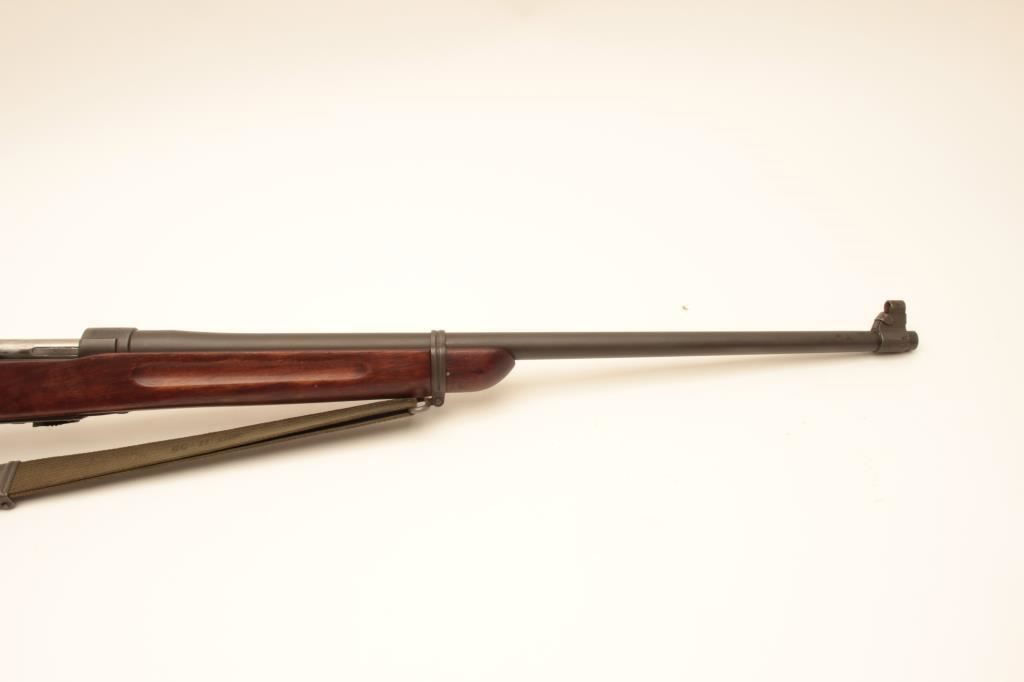 US Springfield M1922 MII bolt action rifle, .22 caliber, Serial #14423B. The rifle is in fine overall condition with a 24” round barrel with a hooded front and Lyman tang sight in the rear. The rifle retains nearly all of its military finish with only light handling marks. The smooth wood stock is in very good condition with light scratches and storage marks. The butt stock includes sling swivels, an OD green canvas sling and ends with a checkered steel butt plate. The consignor has included the original paperwork, indicating a February 2, 1959 NRA Member Purchase Authorization addressed to the Commanding Officer of the Benicia Arsenal, Benicia, California. The bore is good, the action is crisp and markings are sharp on this lightly used trainer with some interesting paperwork. Est.: $800-$1,600. (C+R).