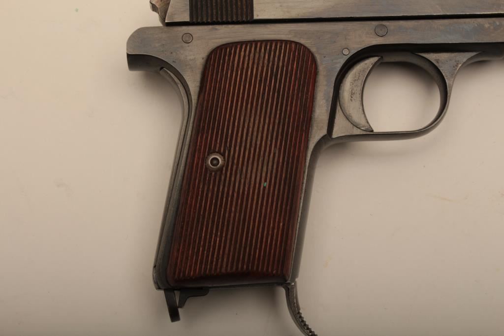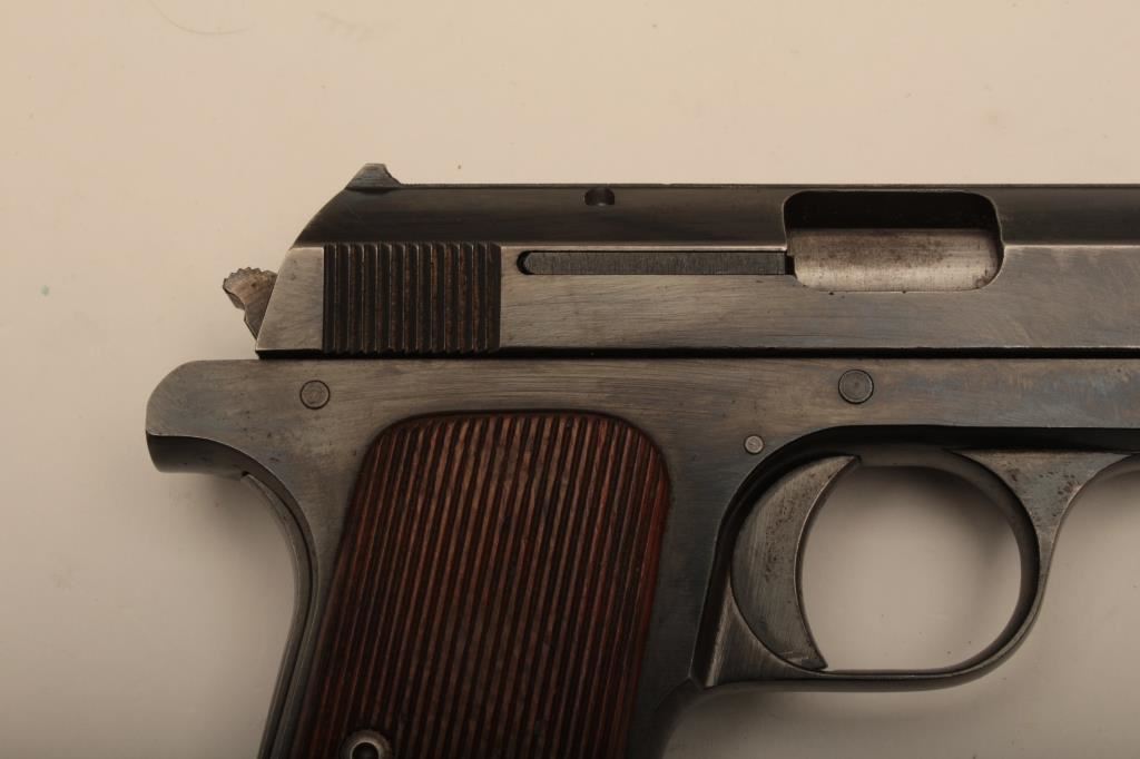 Hungarian Femaru Type 37 semi-automatic pistol, 9mm caliber, 3.75” barrel, blued finish, no nazi proofs, brown grips, S/N 171583; overall very good condition with majority of finish remaining, some holster and high point wear; very good bore, crisp action and markings, very good grips. (C&R/PPT). Est.: $250-$500.