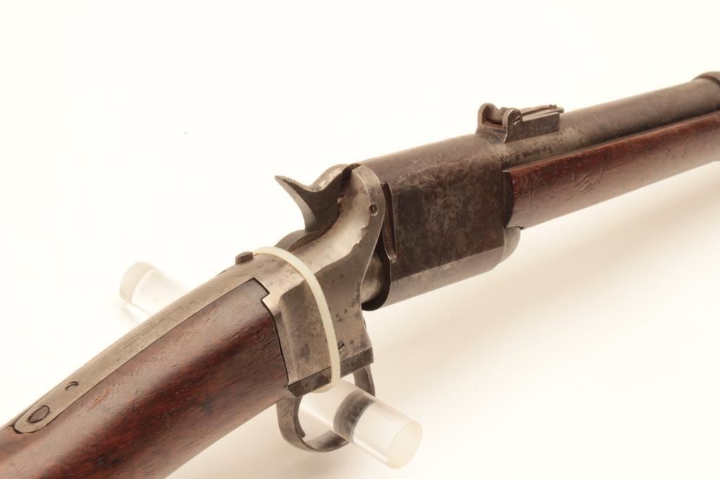 Triplett & Scott Civil War era carbine, .50 caliber, 22” barrel, wood stocks, S/N 3368 with left side of rotating breech marked “KENTUCKY”; overall fair to good condition with scattered areas of pitting to breech area, frame and barrel with some old cleaning to the forward area of the barrel, working action, visible markings, fair + wood with an old crack on the lower left side of the wrist. (Antique). Est.: $1,000-$2,000.