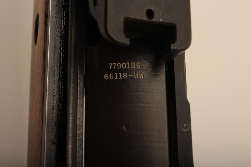 Custom armor built M1A in .308 on Springfield Armory action, S/N 079864. Winchester barrel aand parts on Winchester stock and handguard. Completely legal semi-auto using high quality Winchester parts. Very good plus overall condition with wood showing cleaning and most cartouche. No mag. The barrel dated 1961. Bright bore. (C&R) Est.: $800-$1600