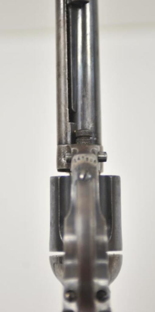 Colt Model 1877 Lightning DA revolver, .38 caliber, 4.5” barrel, blued and case hardened finish, checkered hard rubber grips, S/N 142206; overall very good condition with considerable original blued finish remaining on barrel assembly and cylinder; silver tone to frame; crisp action and markings, bore shows some scattered pitting; very good grips; accompanied by a Colt factory letter confirming features (stocks “Not Listed”); sold to Flor Tag Co., St. Louis, MO. and shipped to the continental Tobacco Co., New York, N.Y. on February 16, 1903, 100 guns in shipment. (C&R/PPT). Est.: $600-$1,200.