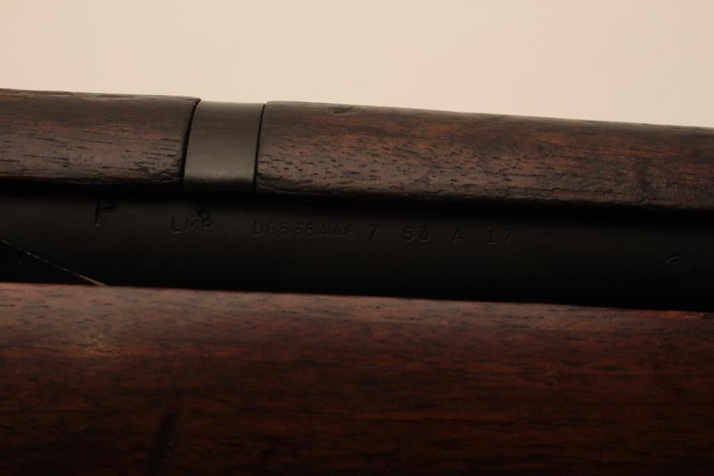 US International Harvester M1 Garand rifle, .30 caliber, Serial #4657843. The rifle is in very good overall condition with a 24” barrel. The metal surfaces retain the majority of their original military finish with wear at the muzzle and areas of light surface erosion. The smooth wood stock is in good condition with small mars and compressions consistent with service use. The barrel is marked, “LMR” and dated 7-53. The butt stock features multiple cartouches. The butt stock includes sling swivels, an OD green canvas sling and ends with a checkered steel butt plate with trap. The bore is very good, the action crisp and markings are sharp on this desirable Garand by the IHC. The lot includes the CMP Certificate of Authenticity indicating the rifle was delivered on August 24, 2004. Est.: $800-$1,600. (C+R).