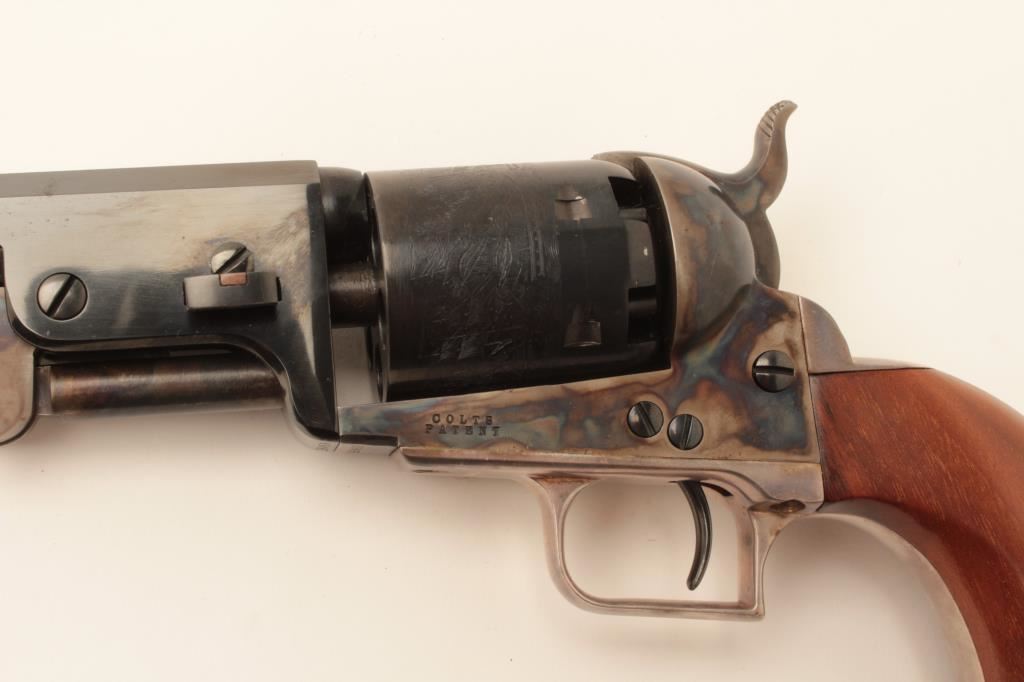 Colt New Blackpowder percussion Model 1851 Navy revolver, .36 caliber, 7.5” barrel, blued and case hardened finish, wood grips, S/N 16456; like new condition and contained in a wooden presentation case. (percussion). Est.: $350-$700.