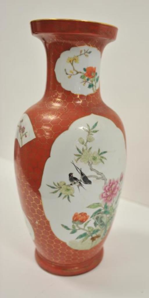 Large porcelain painted Chinese vase with birds, ducks and flowers, approximately 18” in height; 19th Century or earlier; good overall condition. Est.: $250-$500.
