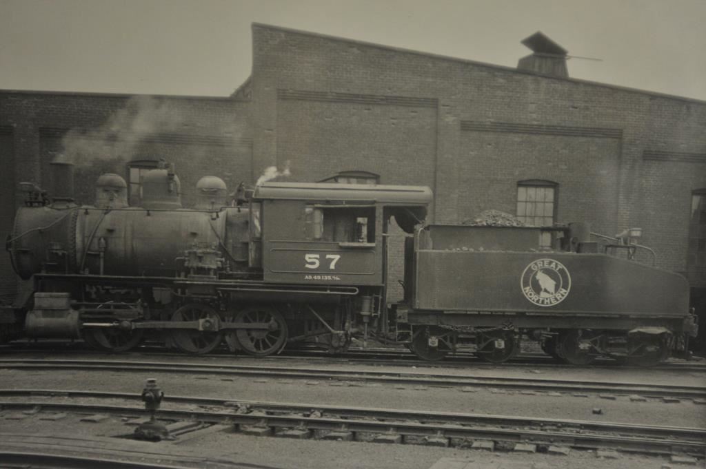 Framed & matted photo of Great Northern railroad engine and coal car #57; approximately 16” x 18.5” overall. Est.: $100-$200.