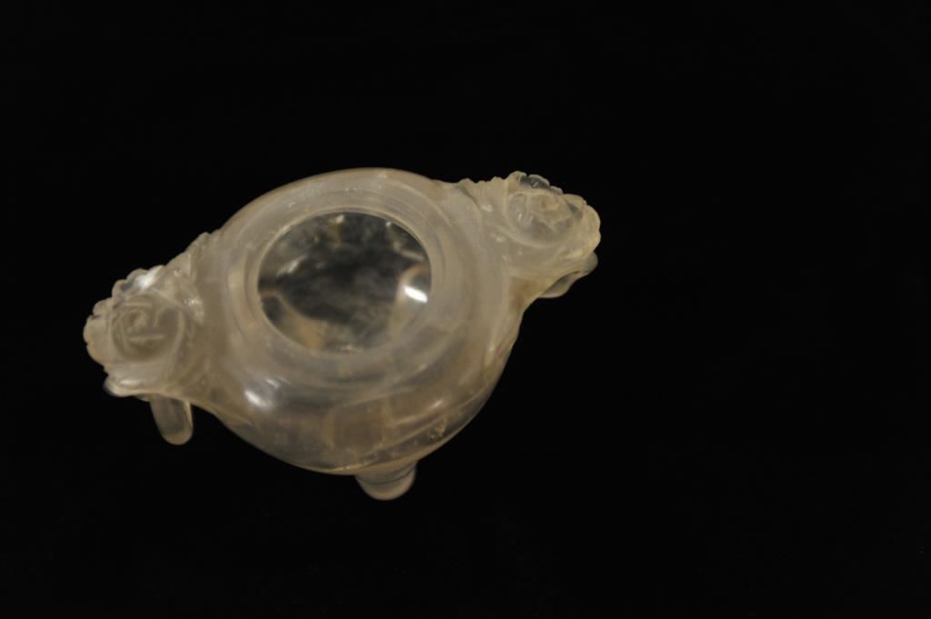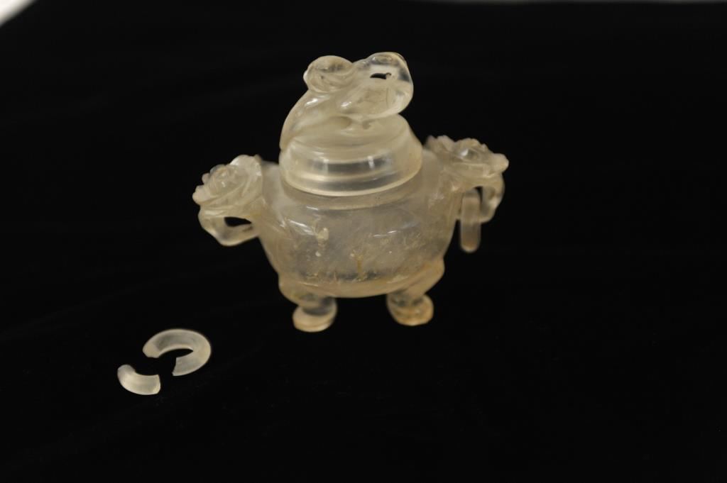 Chinese carved quartz jar; damage to one ring; 100-$150 years old. Est.: $175-$350.