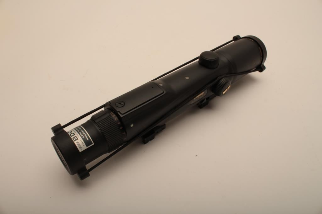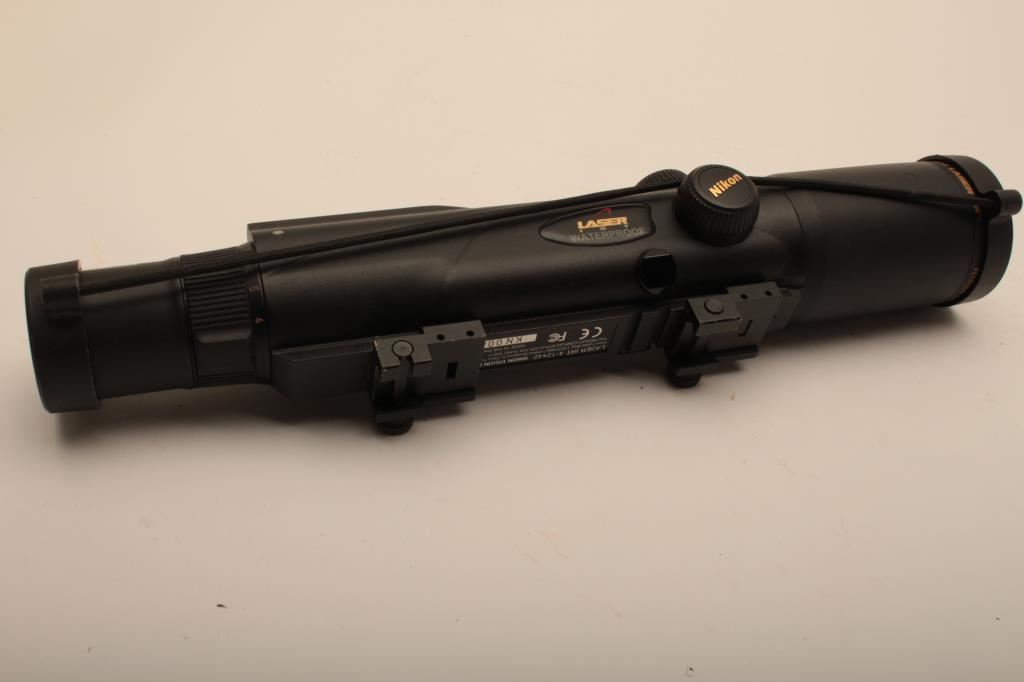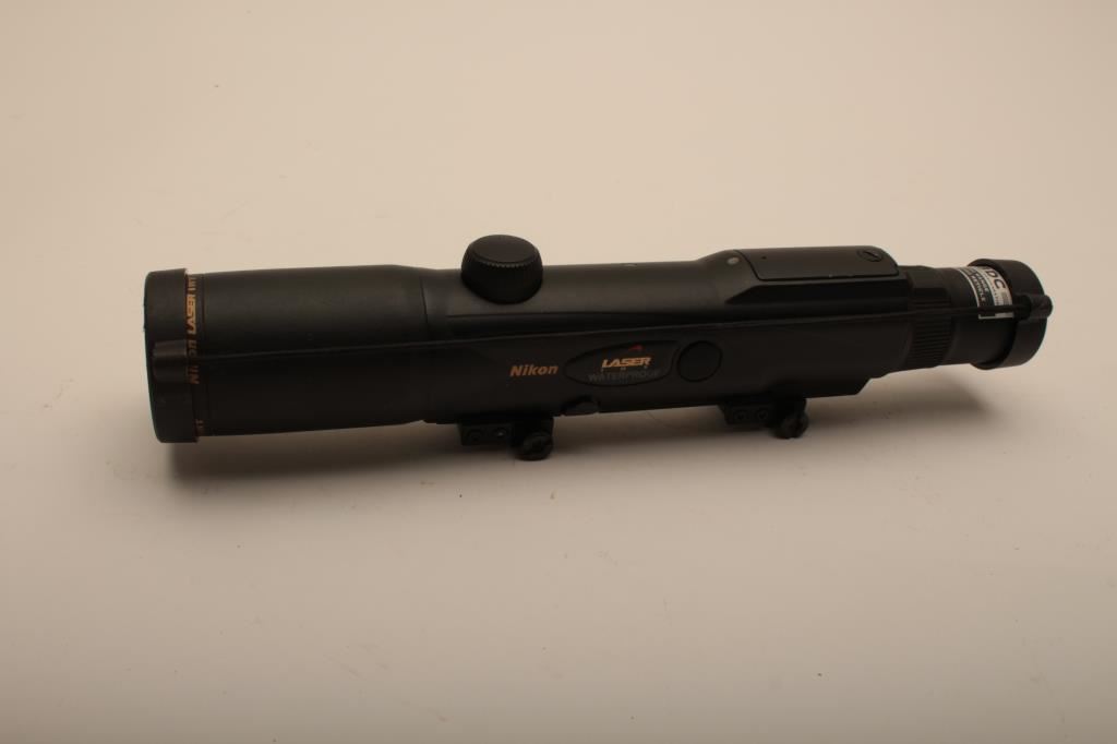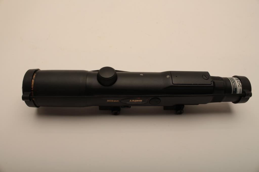 Nikon Laser IRT 4-12x42 waterproof scope with built in rangefinder, very good condition overall, in good working condition, with good optics. These are no longer produced and highly sought after scopes. Est. $600-1200