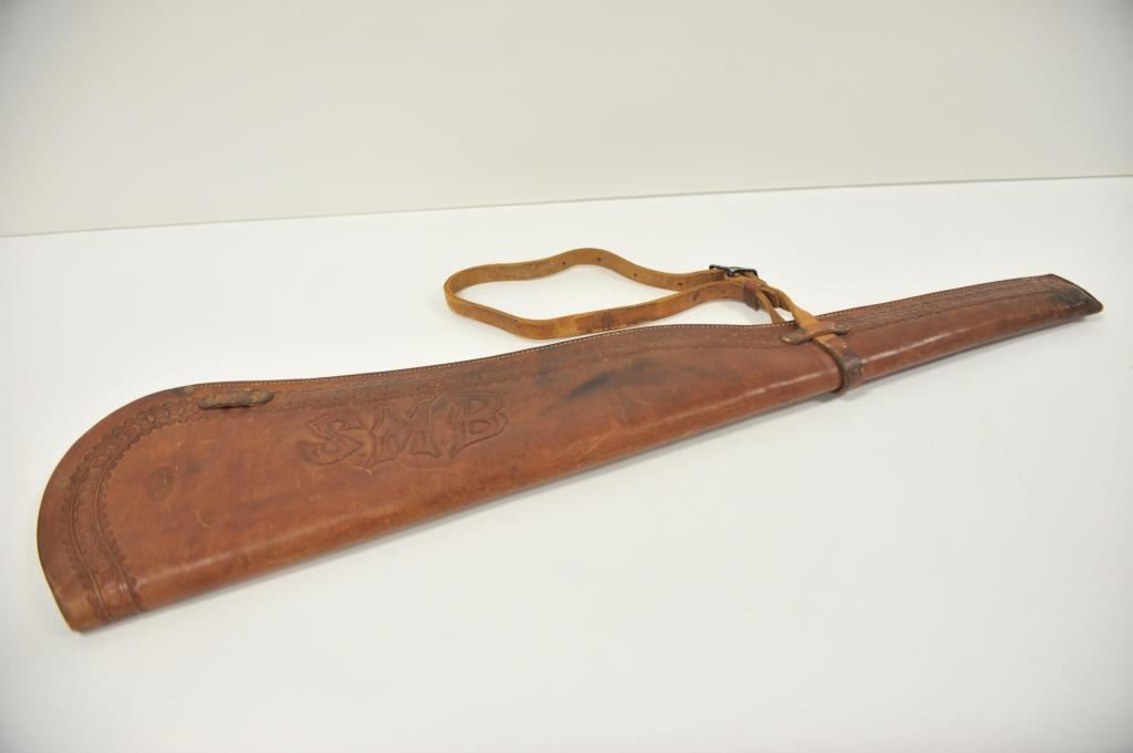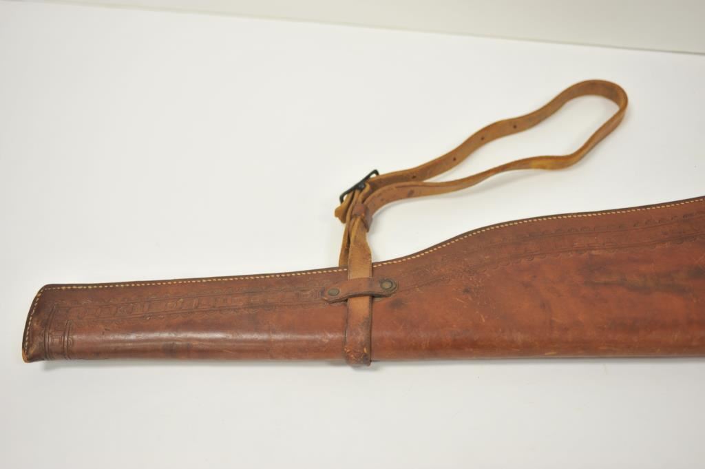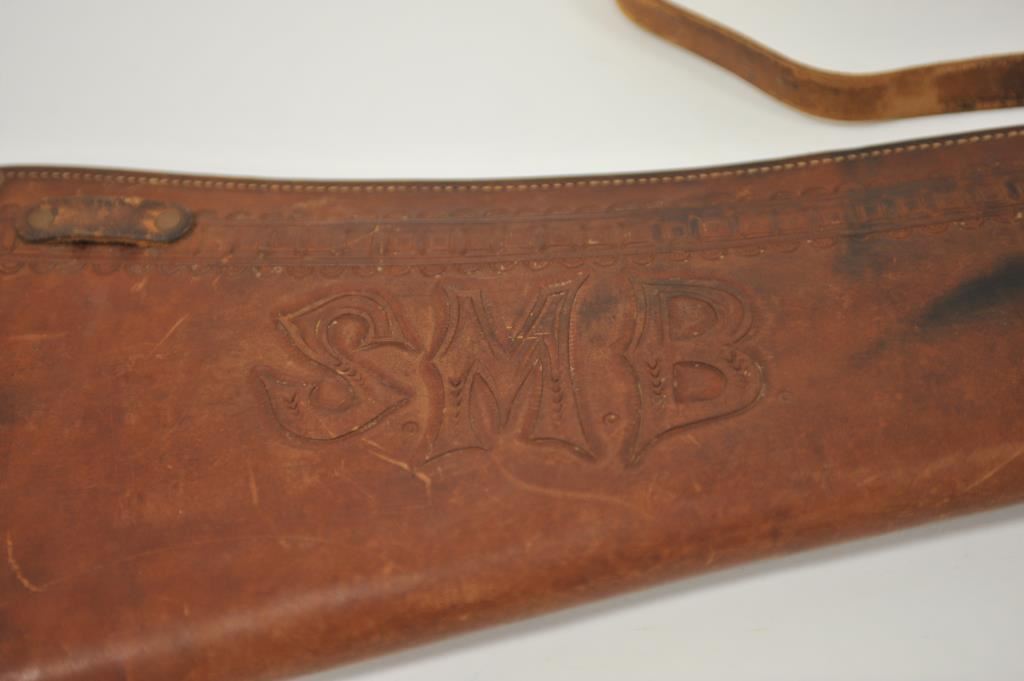 Tooled leather vintage rifle scabbard with one strap; maker marked “Miles City Saddlery Co./Makers/Miles City, Mont.”. Est.: $150-$300.