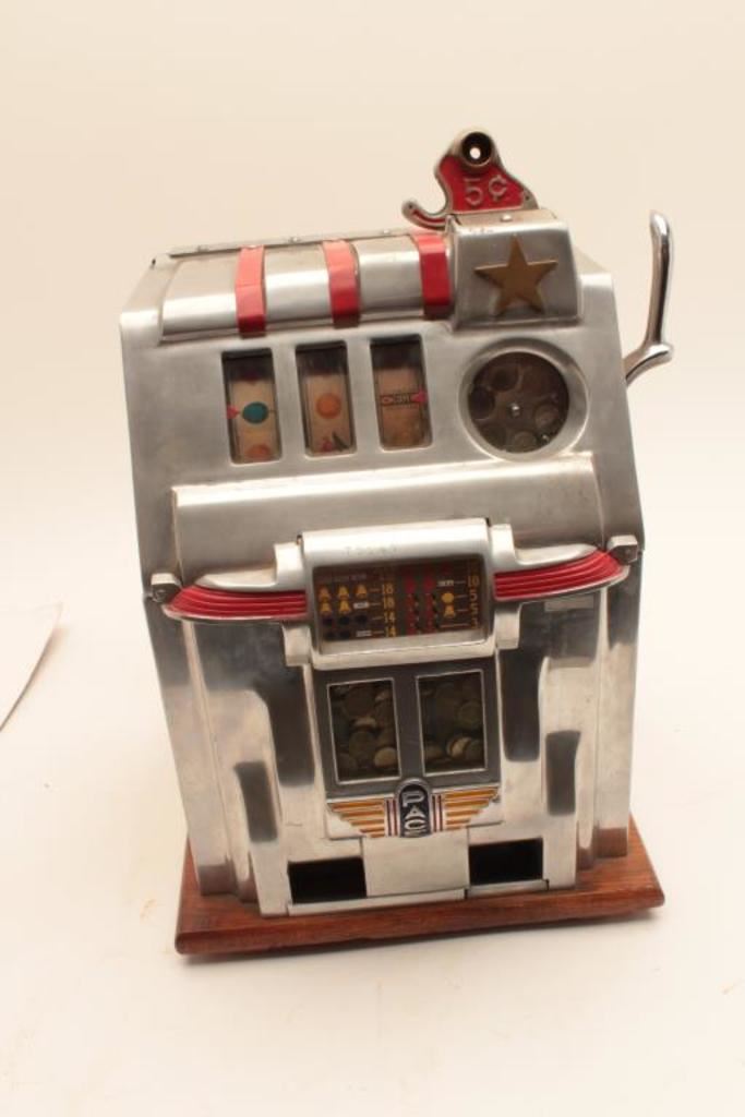 Pace 5 cent slot machine with coin display in very good plus working condition. Est;$600-1200