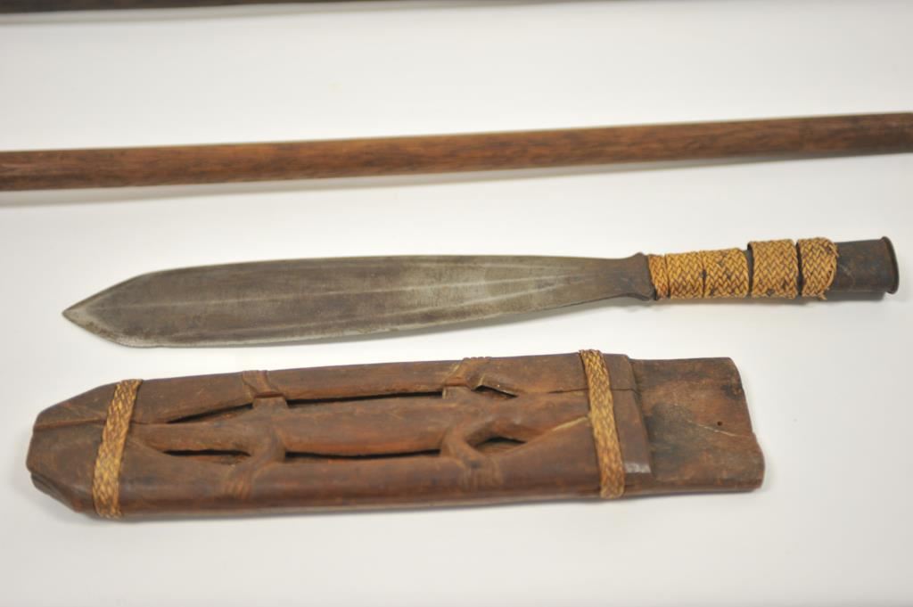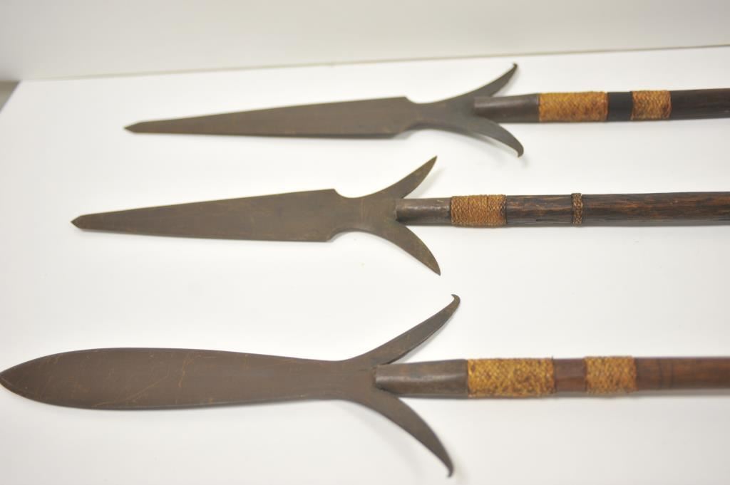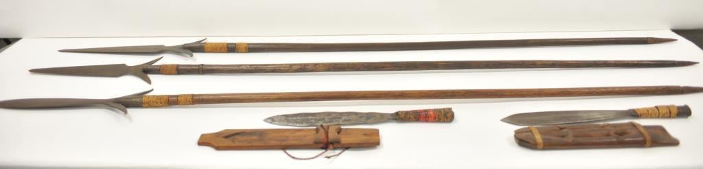 3 spears and 2 knives collected in the Philippines and area of insurrection circa early 1900's. Collected by Cav. soldier Lafayette Moody (a champion trick rider) who also served in WWI. Never out of the family. All good to very good. Est. $250-500
