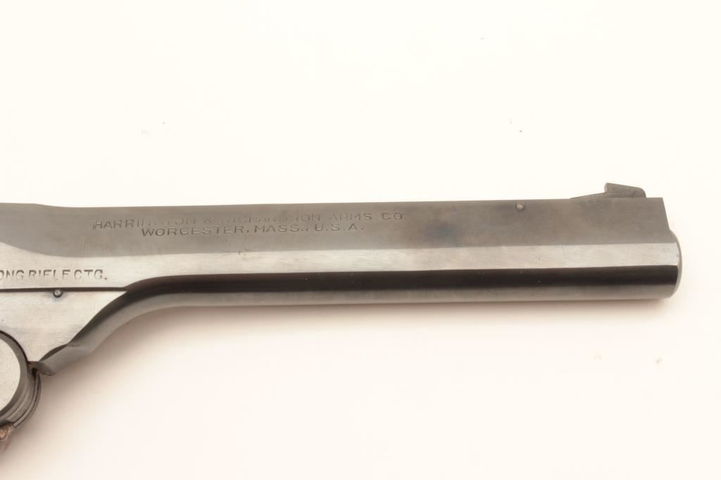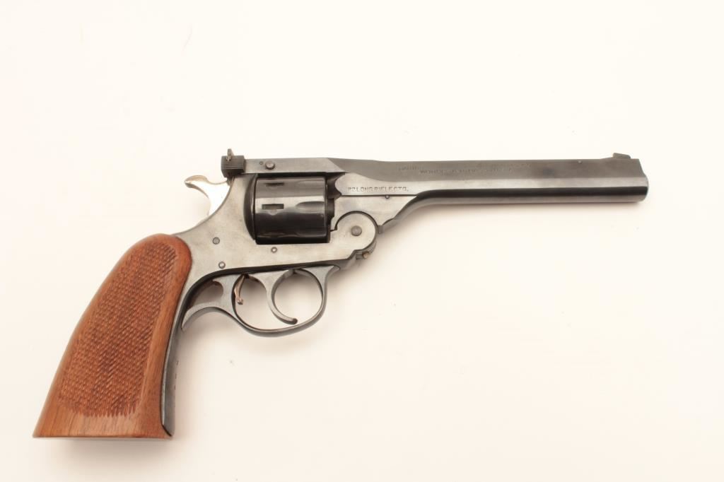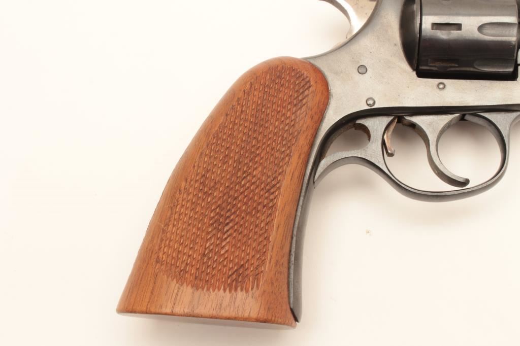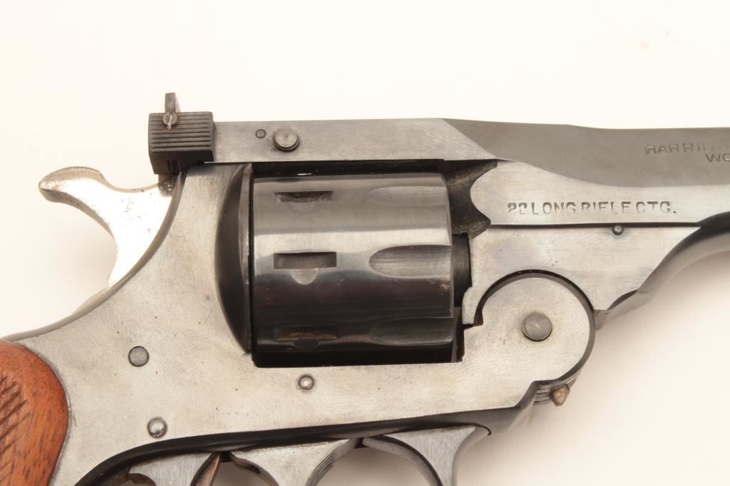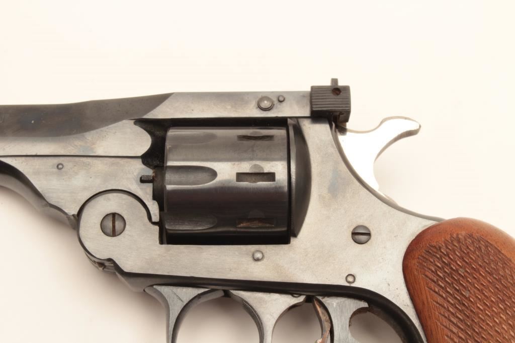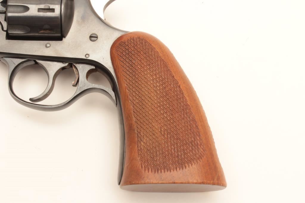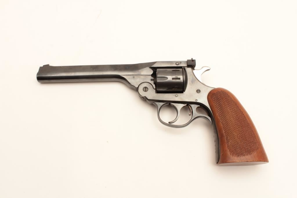 H&R Sportsman Model top break DA revolver, .22LR caliber, 6” barrel, blued finish, checkered wood grips, S/N B5208; overall very good to near fine condition displaying majority of original finish, very good bore, crisp action, sharp markings and very good grips. (Modern/PPT). Est.: $150-$300.