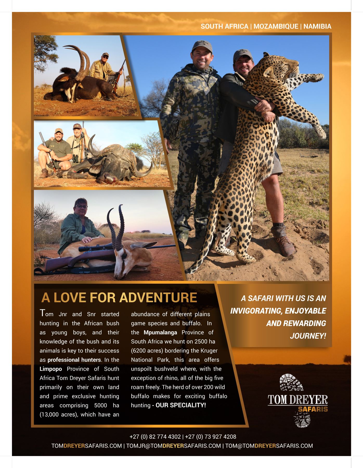 For more information, please contact Tom at tom@tomdreyersafaris.com, or visit their website at http://www.tomdreyersafaris.com/.