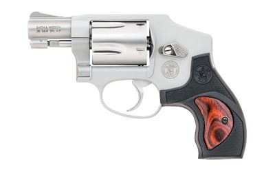 Smith & Wesson, 642, Performance Center Revolver, Double Action Only, Compact Size, 38 Special +P, 1.875" Barrel, High Bright Polished Cylinder Flutes, Polished Thumbpiece and Side Plate Screws, Custom Synthetic Grip with Wood inserts, Chrome Plated Polished Trigger, Cylinder Cut for Full Moon Clips, 5Rd