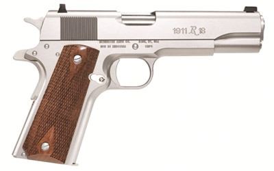 Remington, R1, 1911, Full Size, 45ACP, 5" Barrel, Steel Frame, Stainless Finish, Walnut Grips, Fixed Sights, 7Rd, 2 Magazines