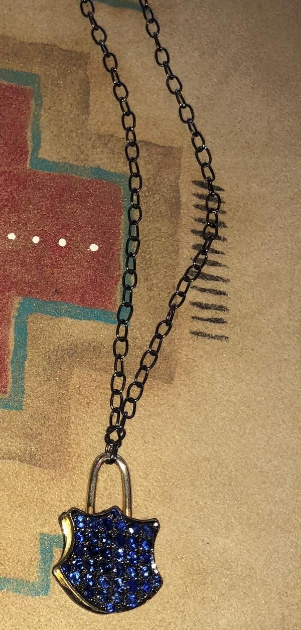 Ornaments Fine Jewelry has donated a beautiful Ladies Elegant Pendant. This stunning work is a handmade locket designed pendant created entirely in 18K yellow gold and fine sterling silver combination encrusted with full cut deep color-saturated blue sapphires suspended from a wide looped chain. For more information, contact Melinda Simpson at ornaments77@gmail.com