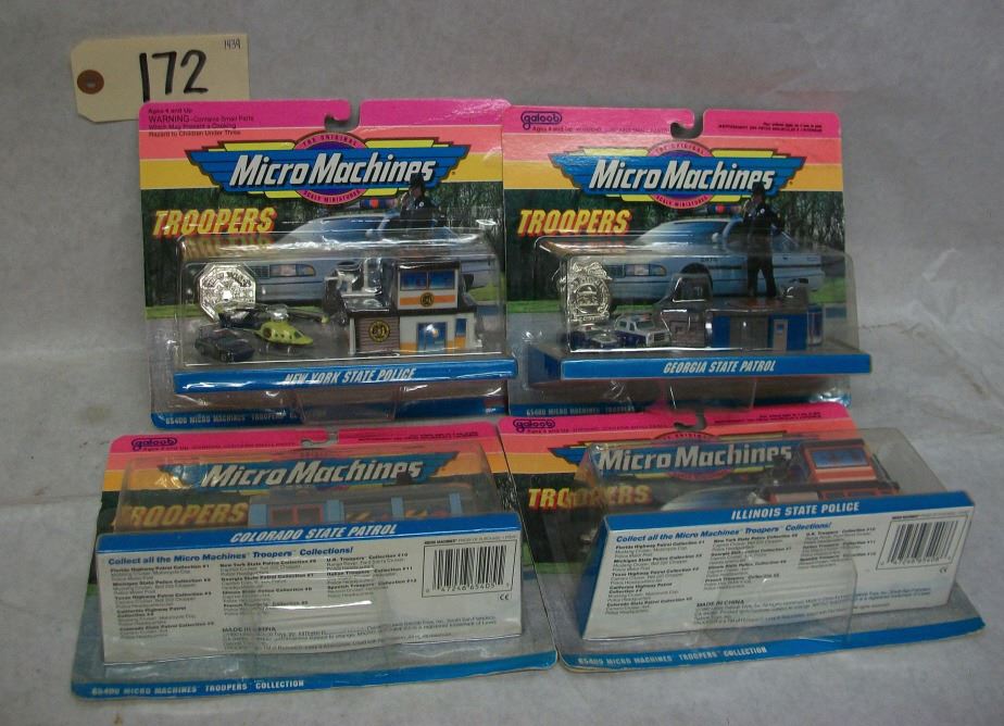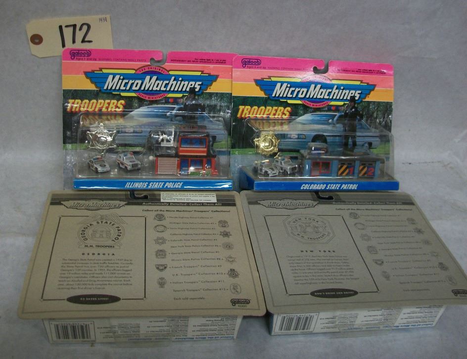 Micro Machines: The Original Scale Miniatures Troopers Collection (65400) In original packages Authentically detailed Colorado State Police Collection (#5) New York State Police Collection (#6) Georgia State Police Collection (#7) Illinois State Police Collection (#8)