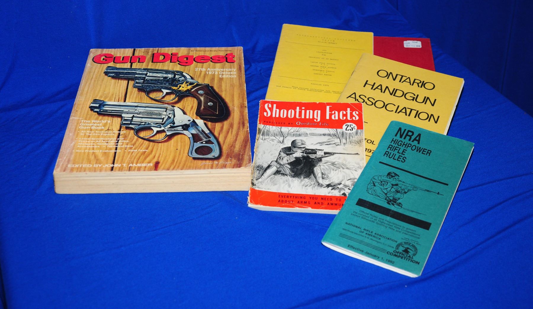 Three volumes Gun Digest, WW1 mementoes, shooting sports.