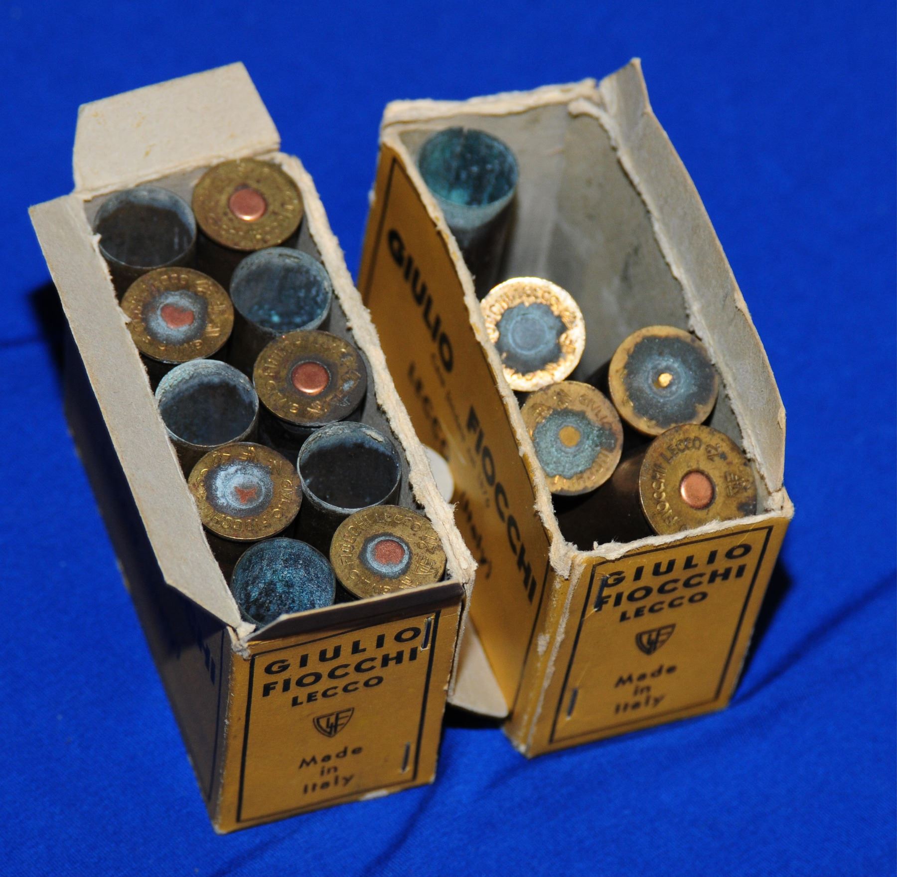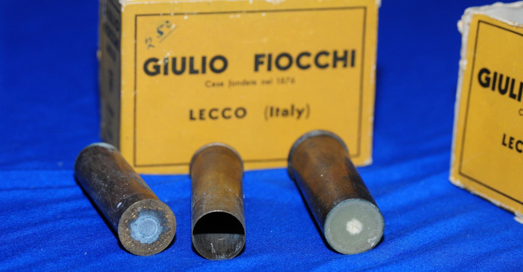 14 pcs of 20 ga. Giulio Fiocchi brass and 1 live rnd of wax covered 12 ga. brass ammo