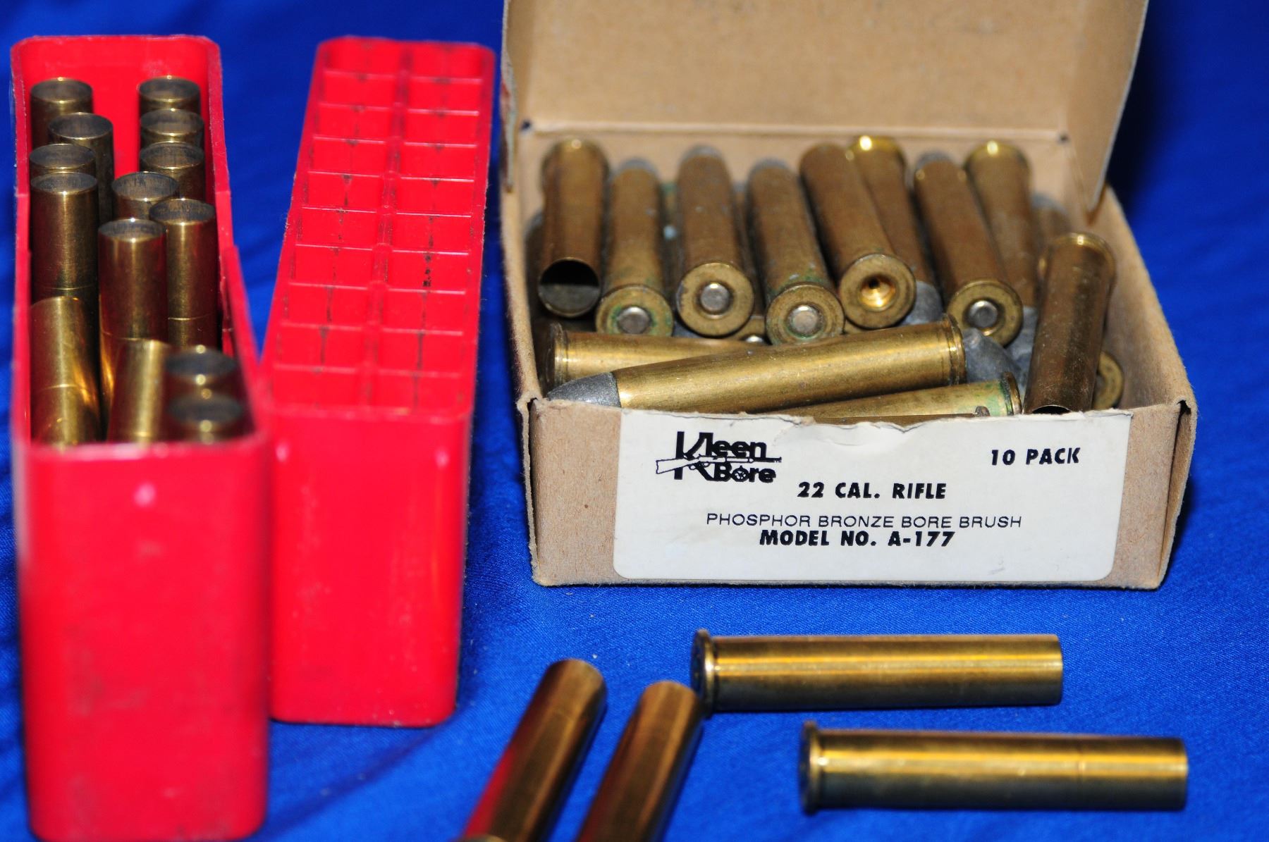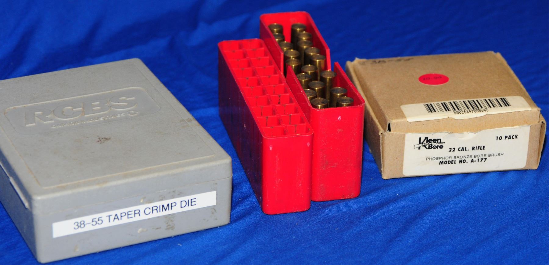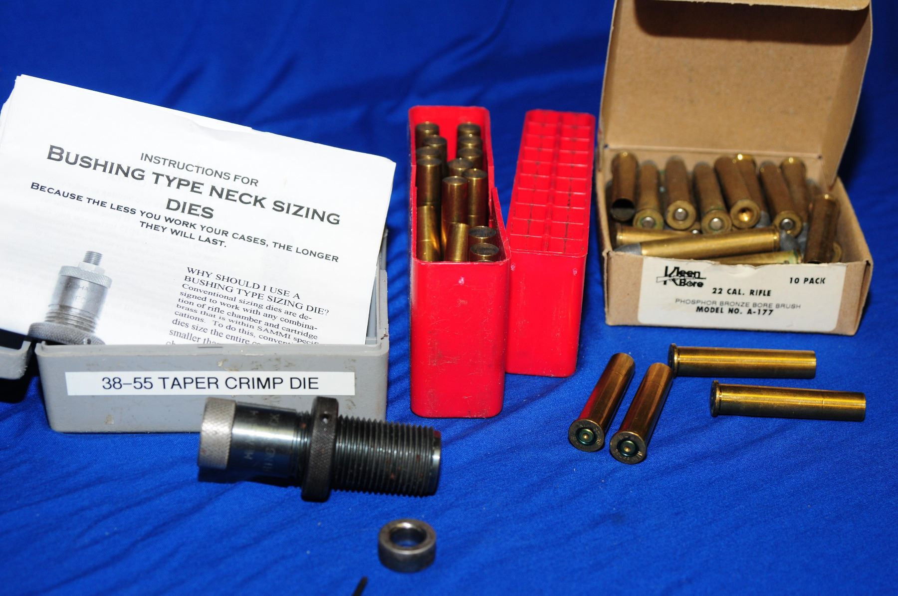 32 rnds 38 - 55 reloaded ammo 24 pcs of fired brass, 38 -55 bushing type neck sizing die