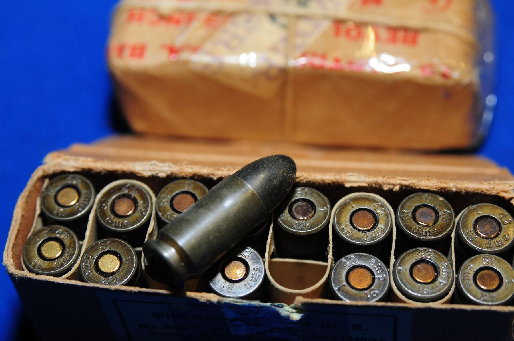 12 rnds .455 Webley in unopen package and 16 rnds vintage 9mm ammo