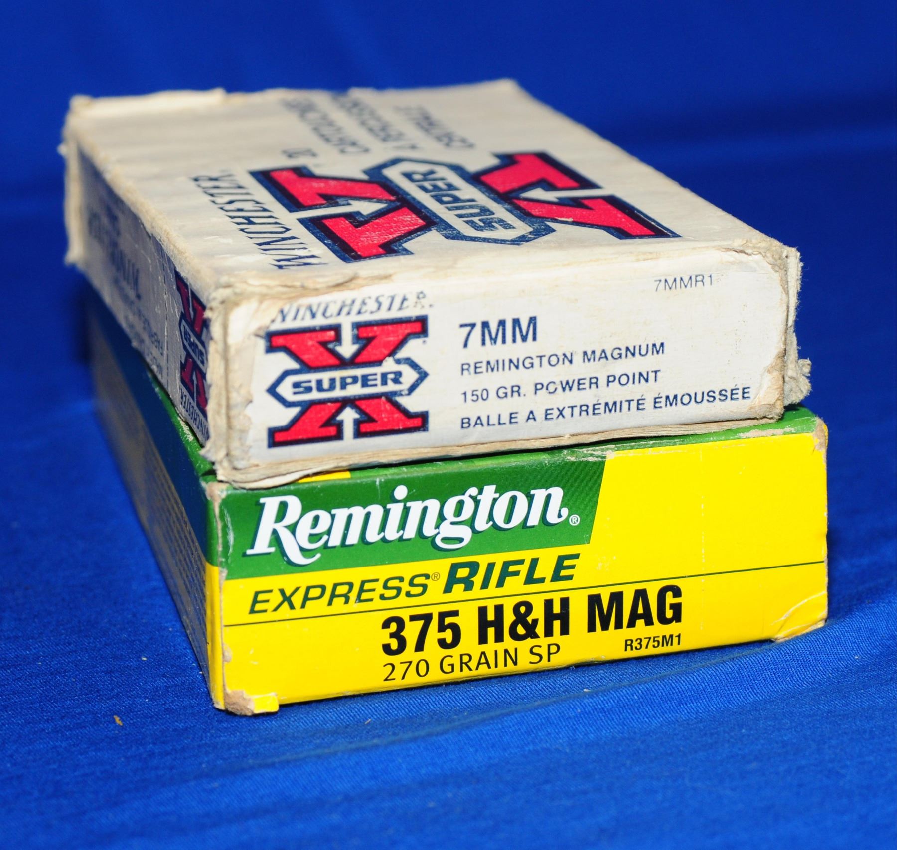 19 rnds of Remington 375 H&H mag. 270 gr. and 20 rnds of Winchester 7mm 150 gr.