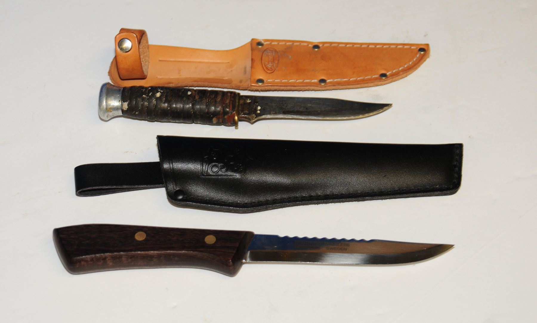 New Sandvick swedish skinning knife and a used premier hunting knife
