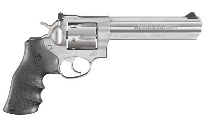 Ruger, GP100, Revolver, Double Action, 327 Federal Magnum, 6" Barrel, Steel Frame, Satin Stainless Finish, Hogue Monogrip Grips, 7Rd, Adjustable Rear Sight & Ramped Front Sight