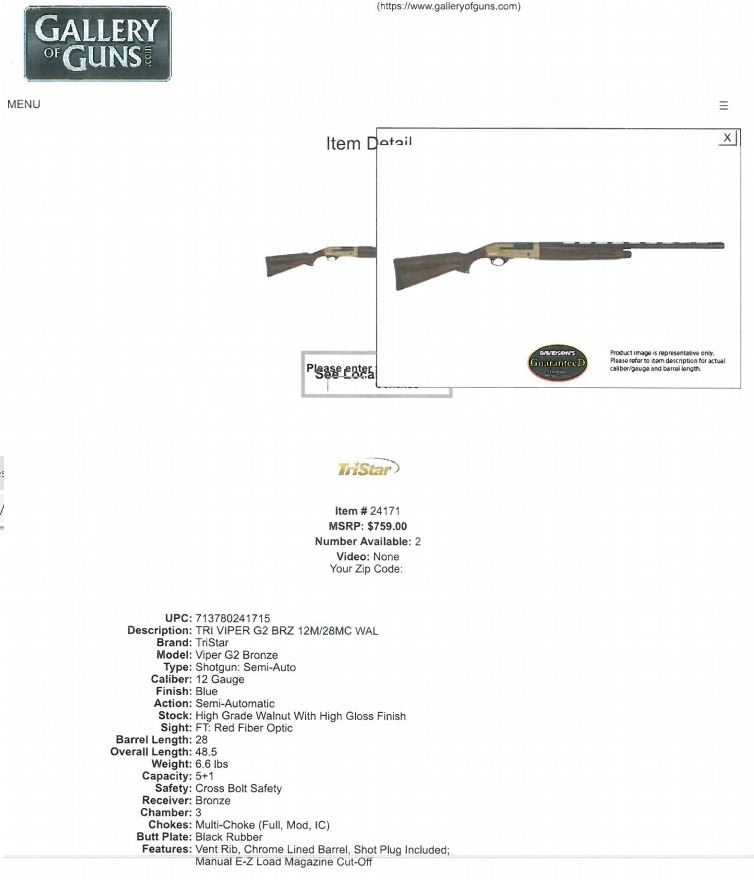 Lot 16G PRO CARGO USA TriStar Viper G2 Bronze 12G Shotgun