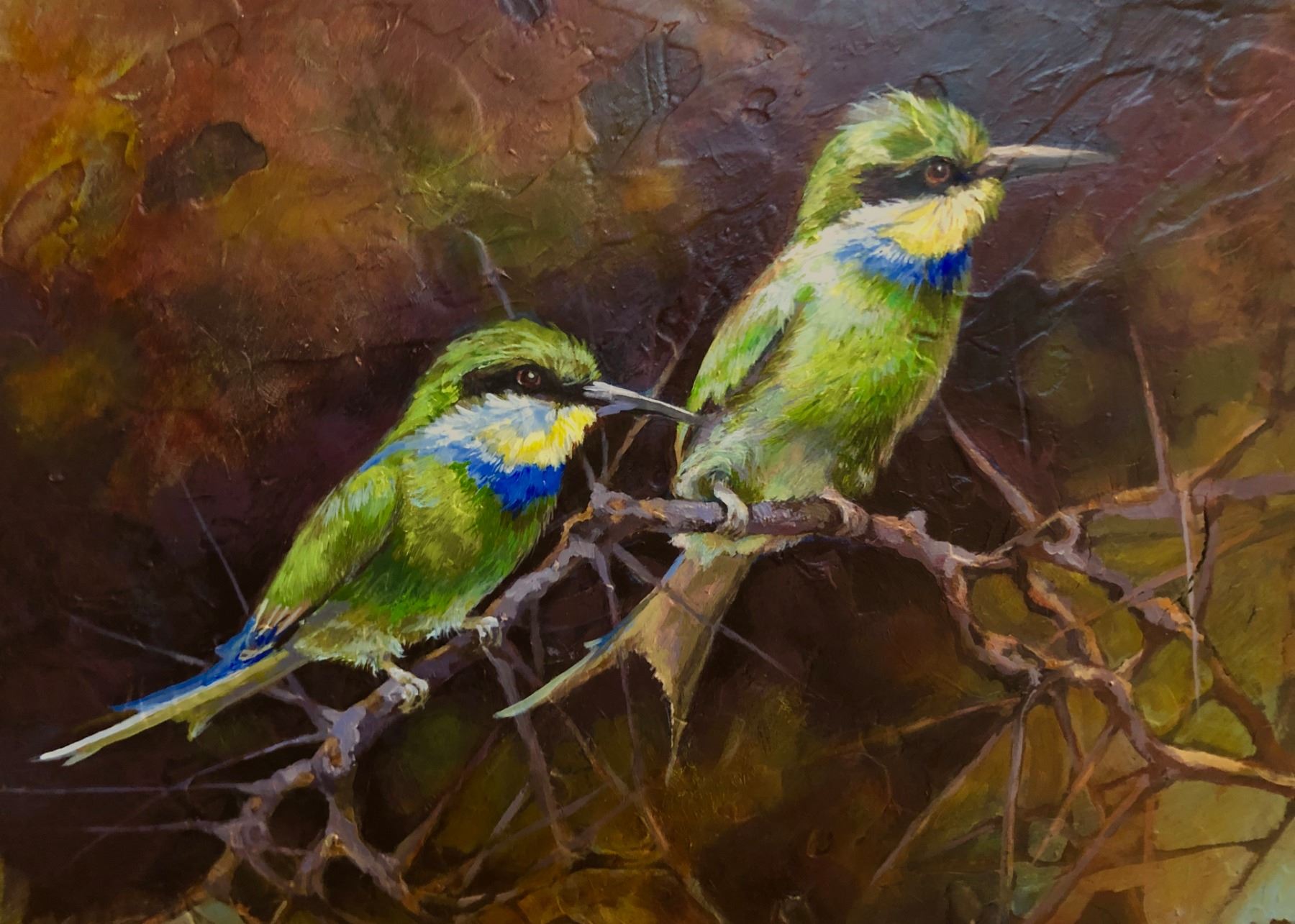 Wildlife conservation artist Vickie McMillan Hayes has donated an original acrylic on 11x14 inch board entitled "Enjoying Life". This piece features three green bee-eaters. HSCF's Gazelles thanks Vickie McMillan Hayes for this donation. vickiemcmillan.com.