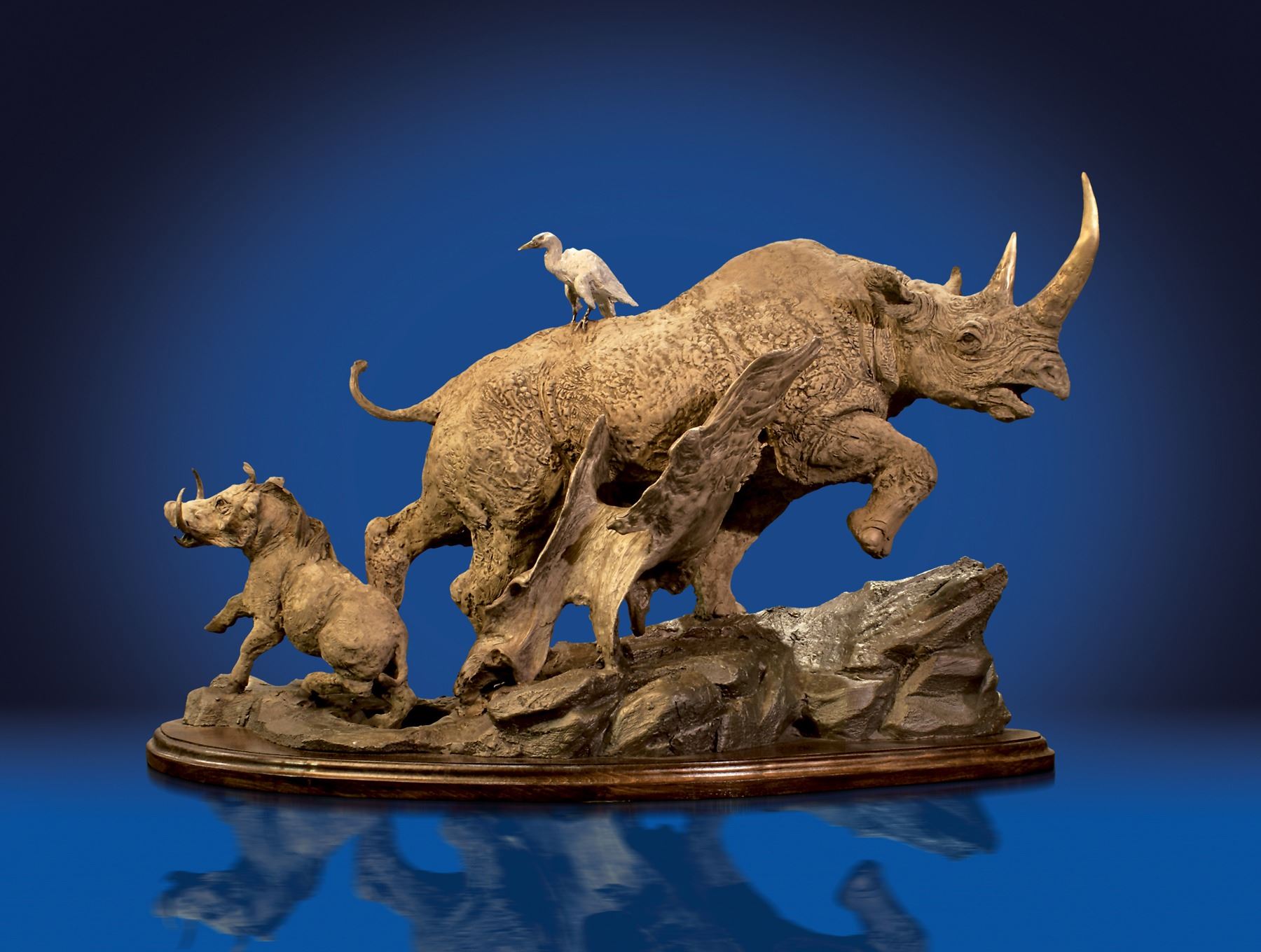 Treasure Investments has kindly donated this beautiful bronze sculpture by Lorenzo Ghiglieri titled "Primitive Power". World renowned artist and sculptor, Lorenzo Ghiglieri, has creations gracing the most prestigious museums and art collections around the world. The White House, Vatican, Kremlin and the Royal Palace in Madrid are just a few. Raised in Southern California, Lorenzo was the son of an Italian sculptor father and a French artist mother. He grew up in a world of ethnic belnds that enriched his understanding of world culture. After receiving formal art training, Lorenzo went forward on his own to study the Old Masters. At the age of 17 he was awarded a prestigious art scholarship, at age 20 was working on national accounts and by age 22 was commissioned to paint what became a gift from the U.S. to Great Britain for Queen Elizabeth's coronation. Dimensions: 12" x 36". Houston Safari Club Foundation thanks Treasure Investments for this donation. HSCF thanks Treasure Investments Corp for this donation. fineart1.com.