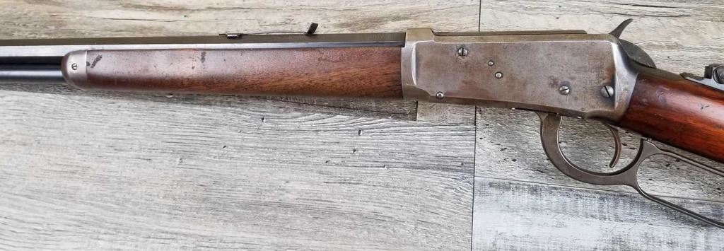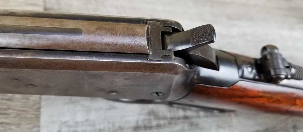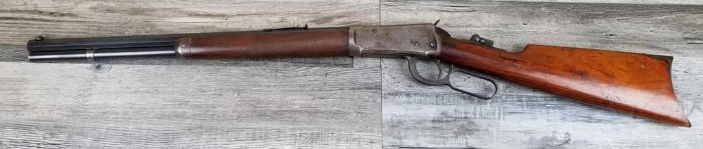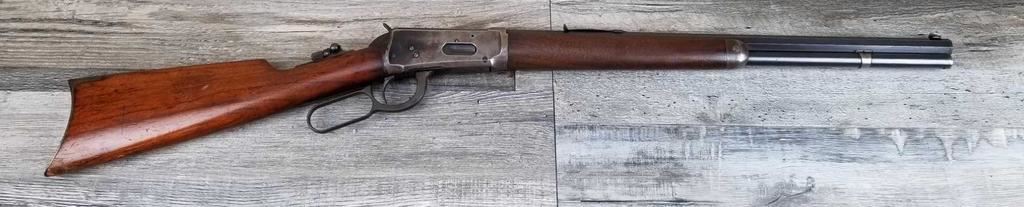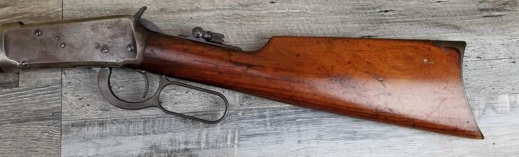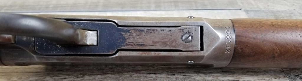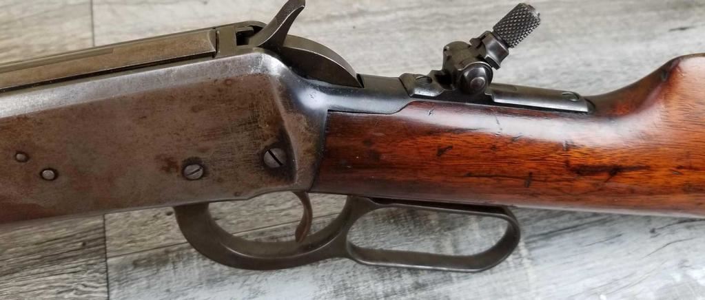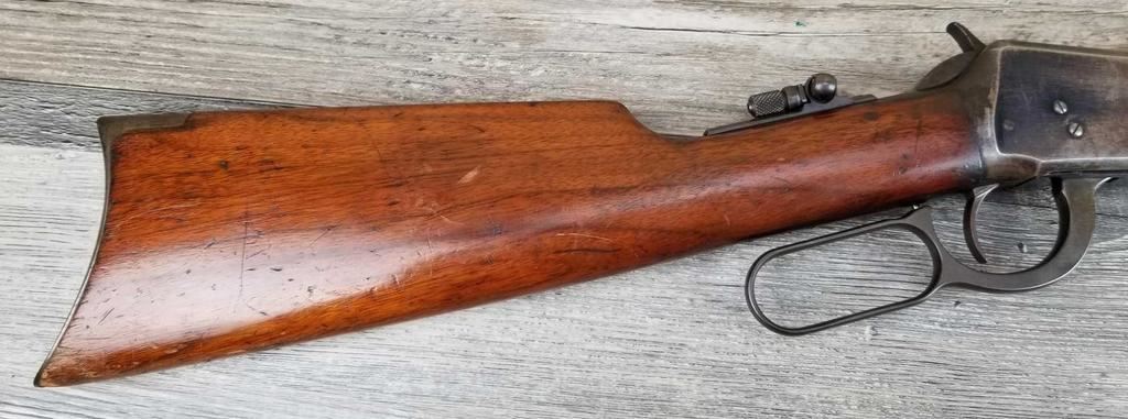 MADE IN 1912. ORIGINAL OCTAGON BARREL. HAS VINTAGE REAR PEEP SIGHT, MISSING THE PEEP AND REAR SIGHT ELEVATOR ALSO. RECEIVER SHOWS TYPICAL HANDLING MARKS. BLUE ON BARREL AND MAGAZINE GOOD. GOOD BORE.