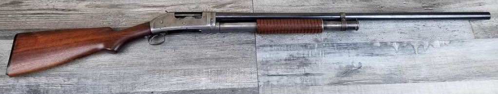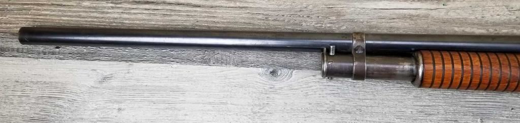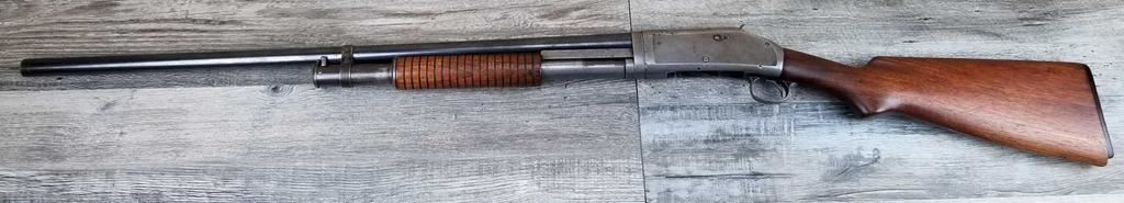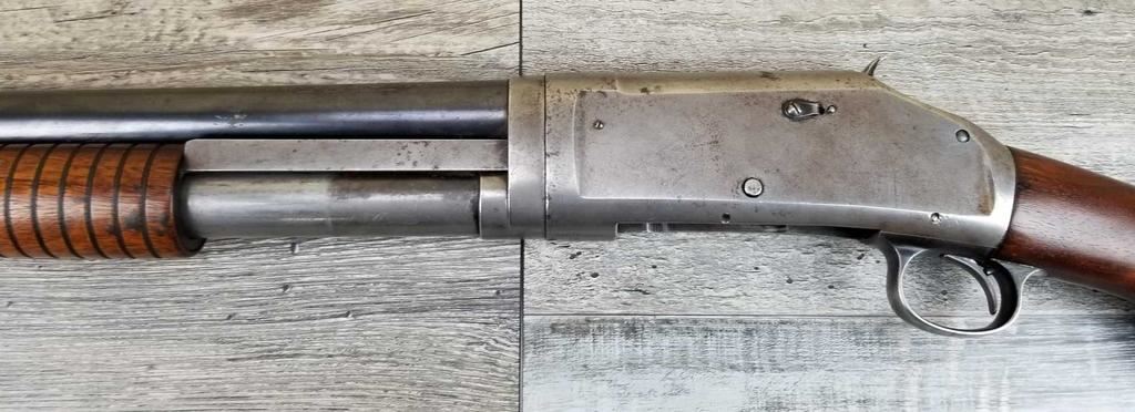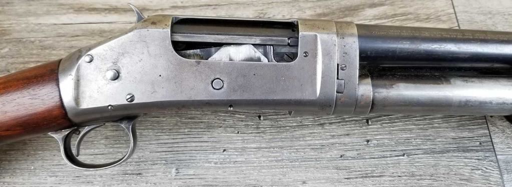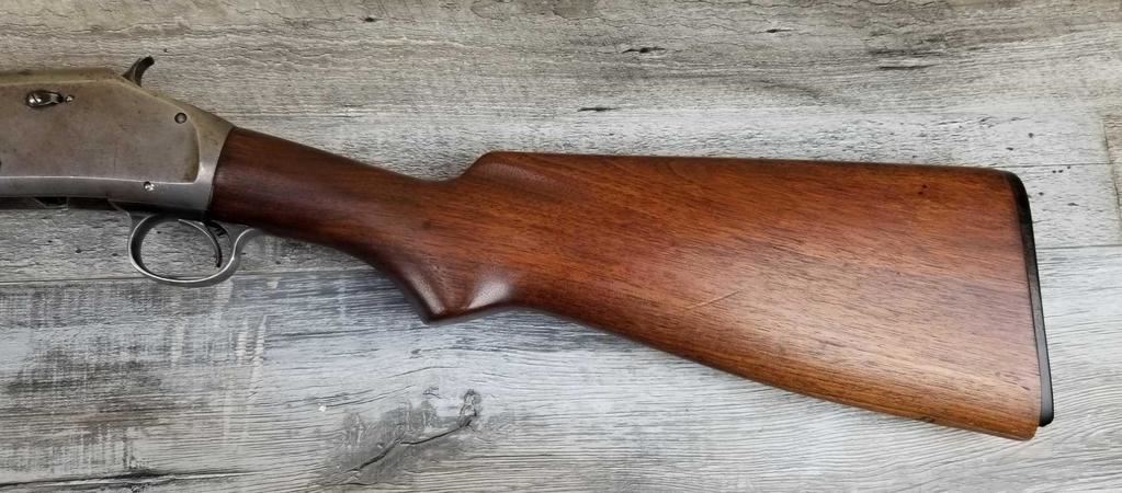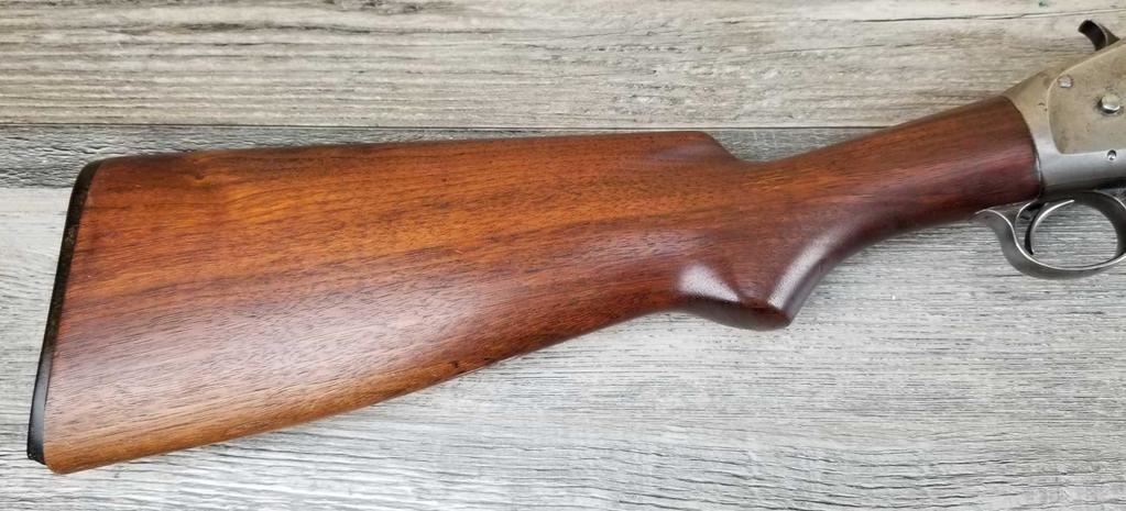 NO FINISH REMAINS ON RECEIVER. GOOD BLUE ON BARREL. CHIP OUT OF BUTT PLATE.