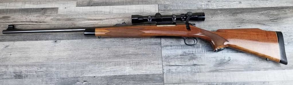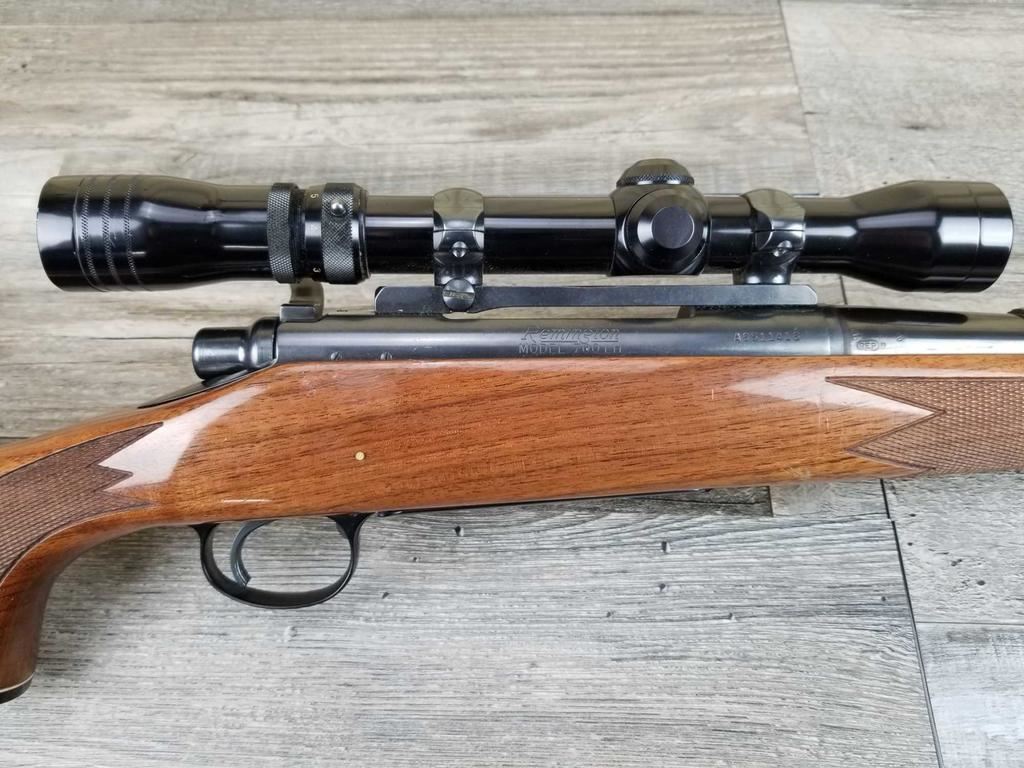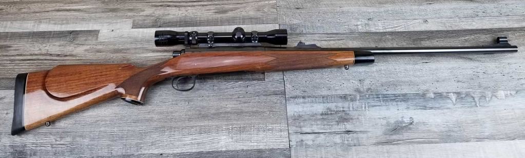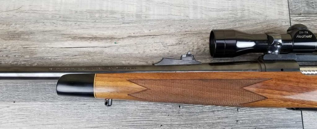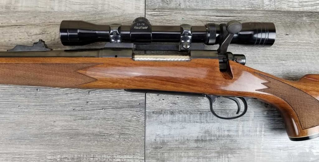 LEFT HANDED MODEL. SHOWS LITTLE USE. COMES WITH REDFIELD 2X7 SCOPE.