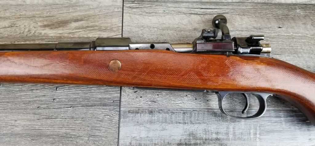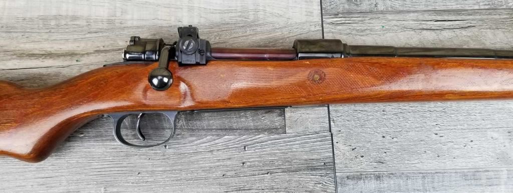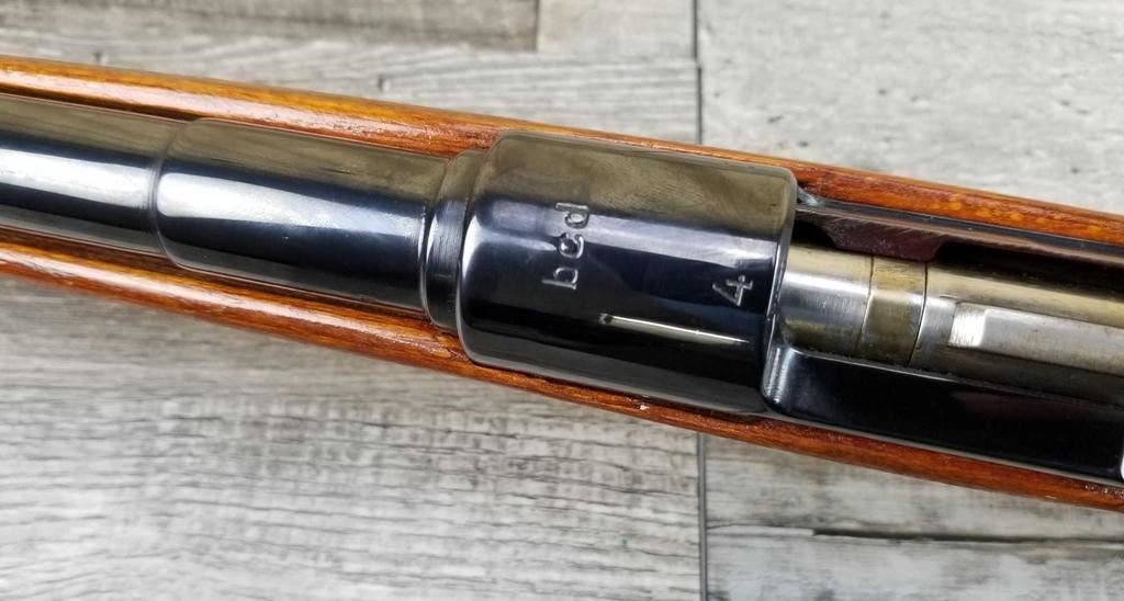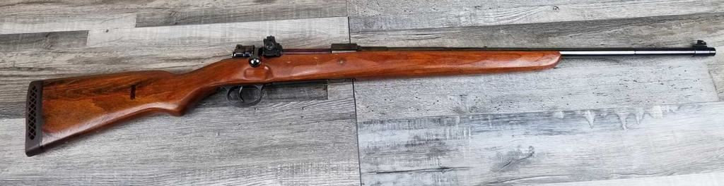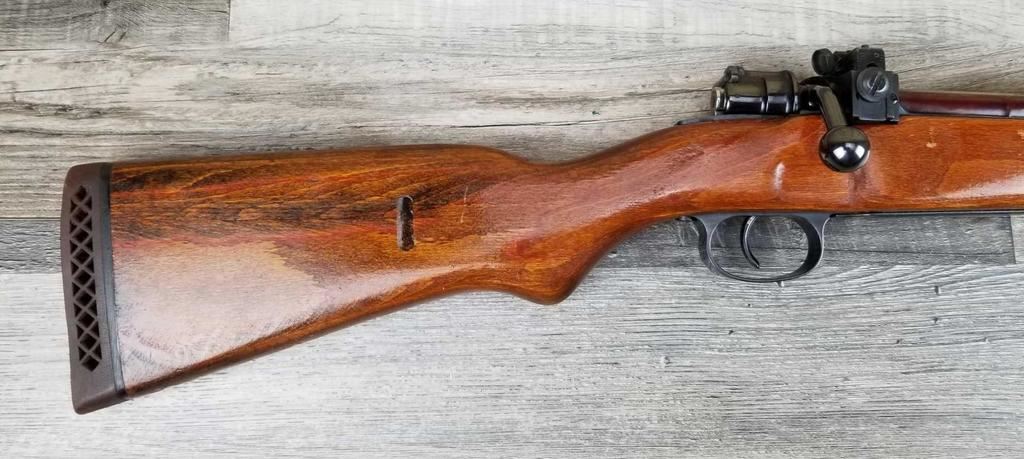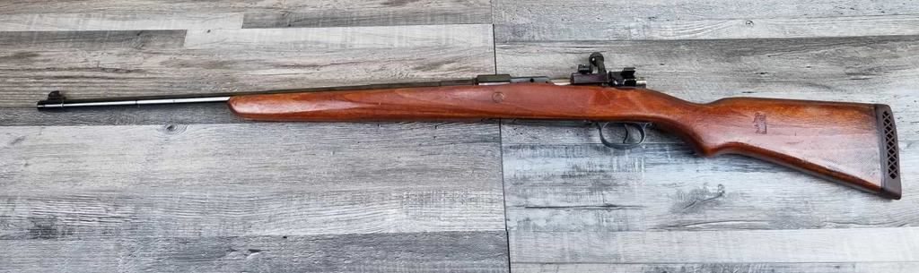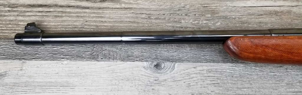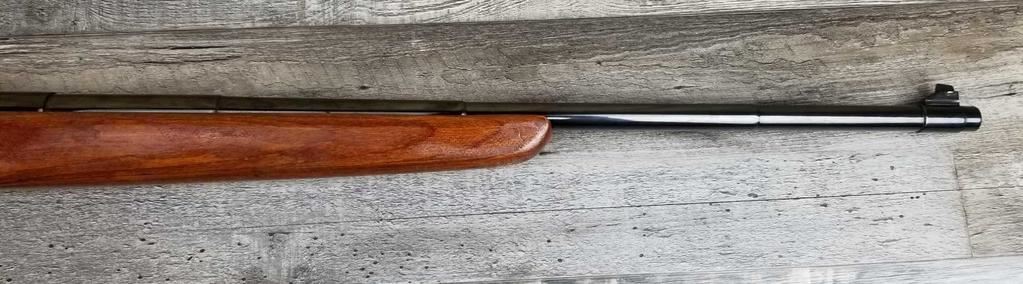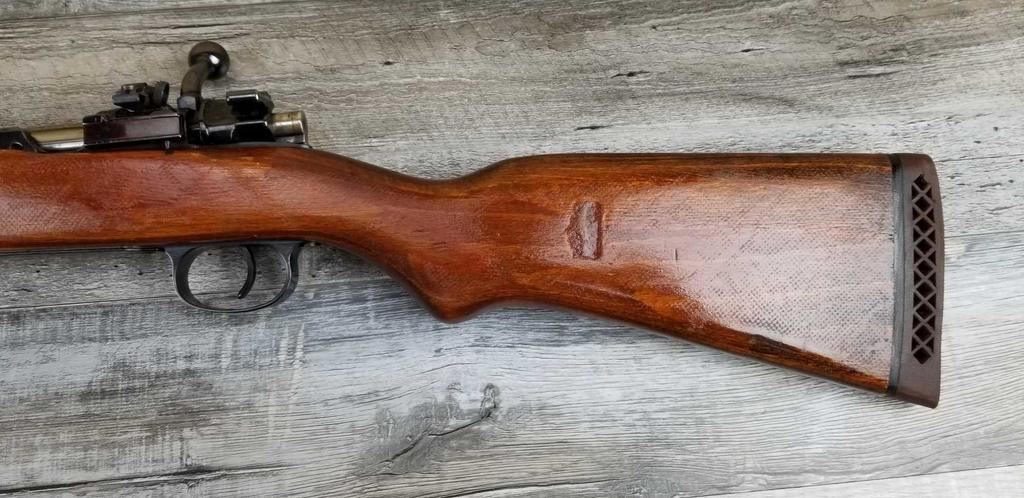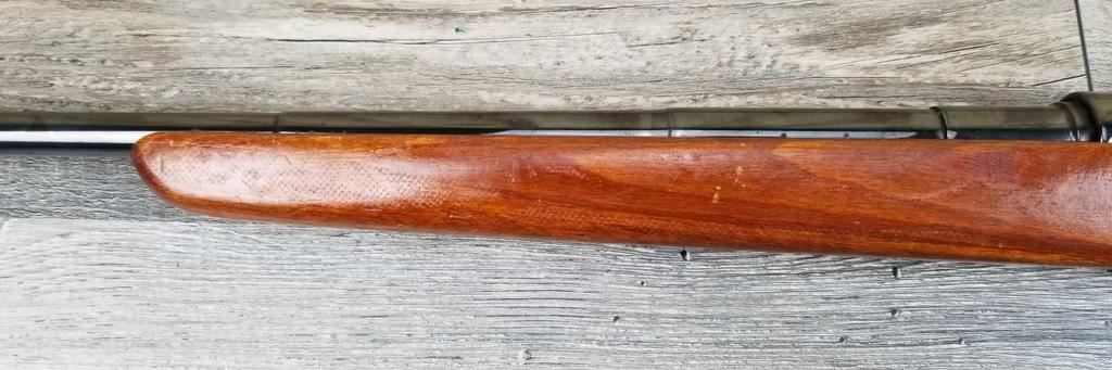 EXCELLENT AS COMPLETELY REFINISHED. HAS REDFIELD REAR PEEP SIGHT, PEEP IS BENT.ODDLY DONE.