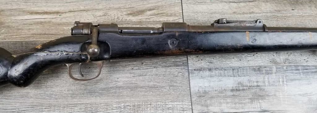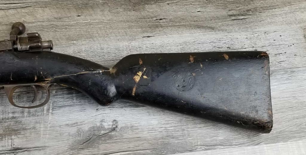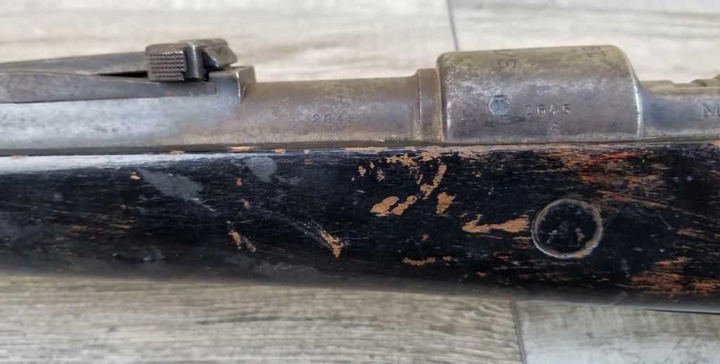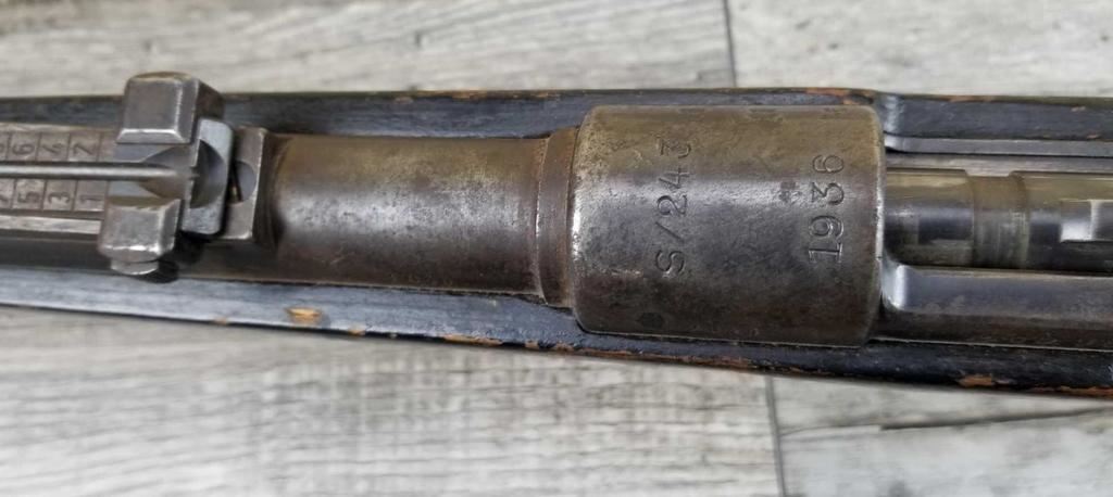 STOCK IN ROUGH CONDITION. RECEIVER DATED "1936". HAS NAZI MARKS. VISIBLE NUMBERS MATCH.