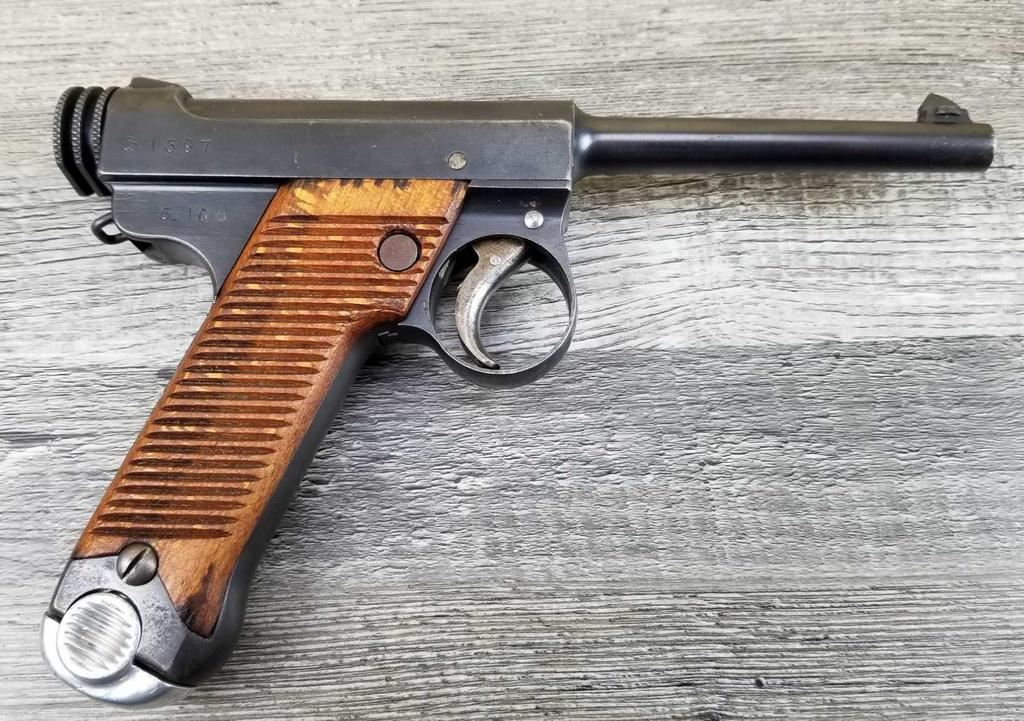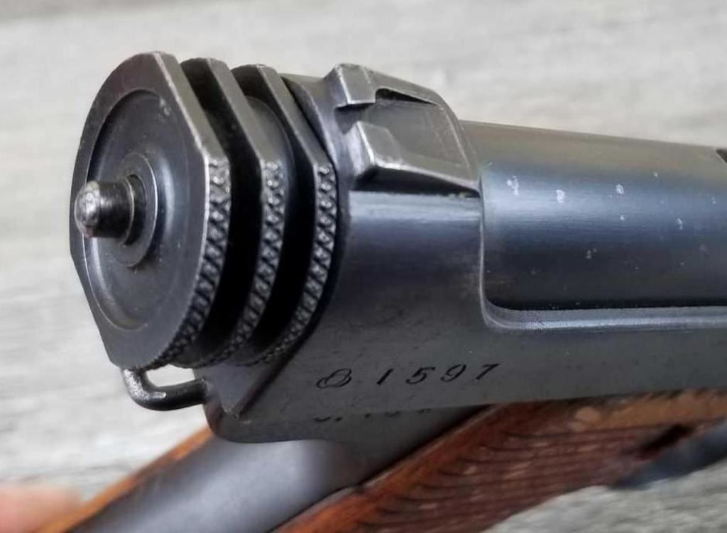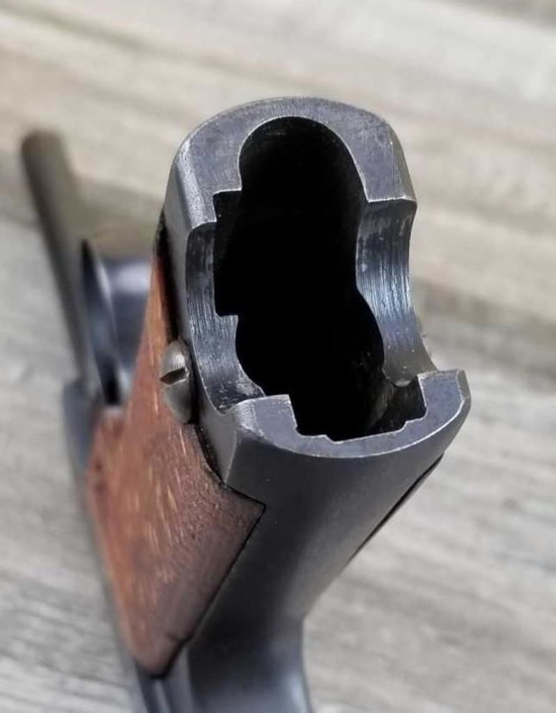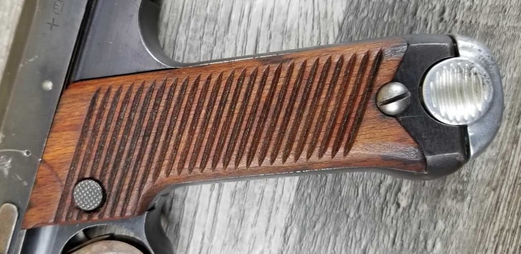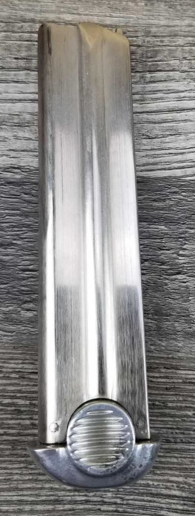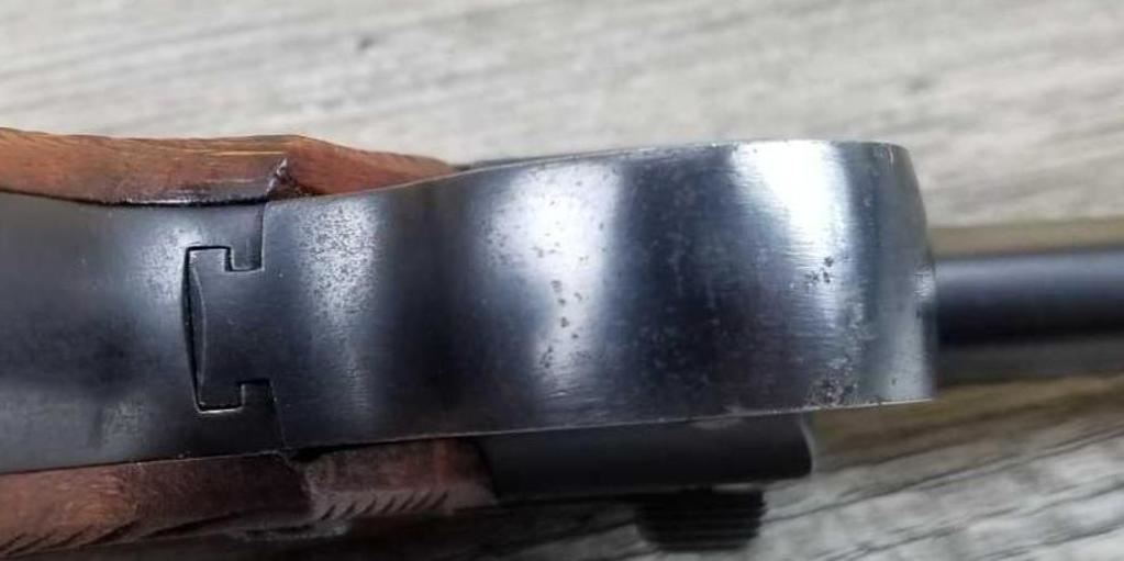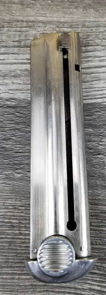 DATED "3.10". LIGHT HOSLTER WEAR AT MUZZLE END. SOME FRECKLING NO VISIBLE CRACKING TO GRIPS. STRONG STRAW COLOR REMAINS ON TRIGGER. MAG NUMBER DO NOT MATCH.