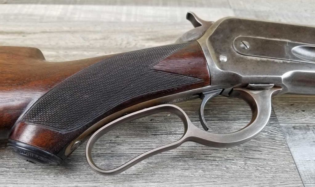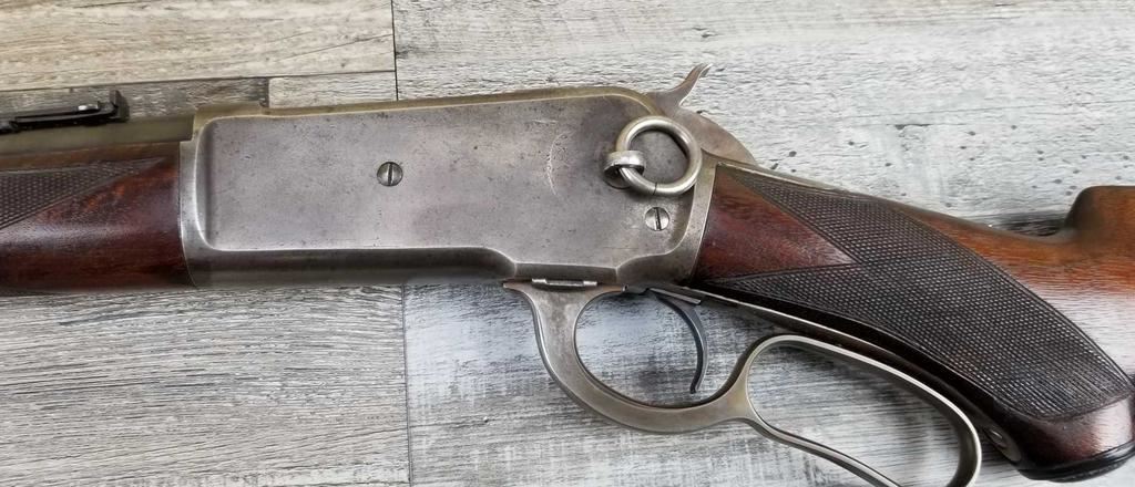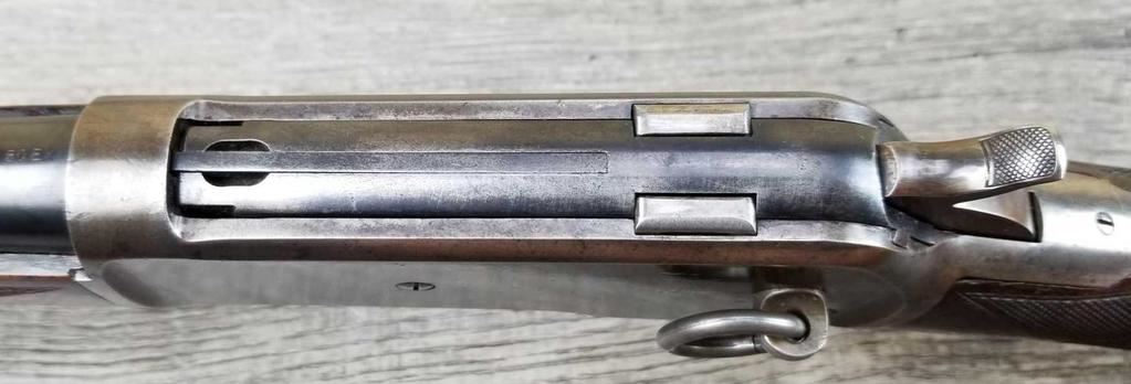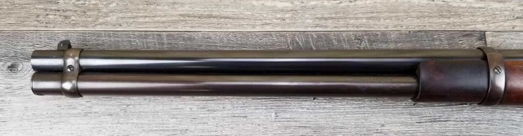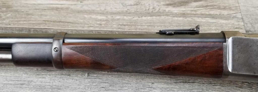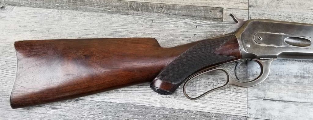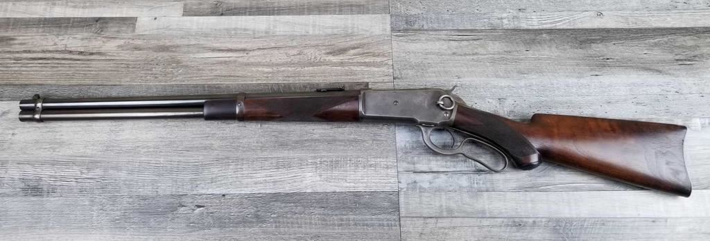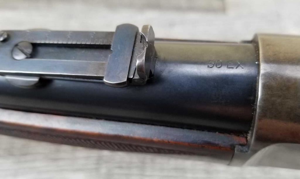 NICE 50 EXPRESS. WITH LATER ACCOMPLISHED BLUE TO BARREL AND MAGAZINE TUBE. CASE HARDENED FRAME HAS TURNED SILVERY-GRAY. STOCK SHOWS GOOD QUALITY RECHECKERING. NICE ACTION, BRIGHT BORE.