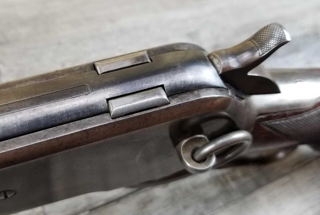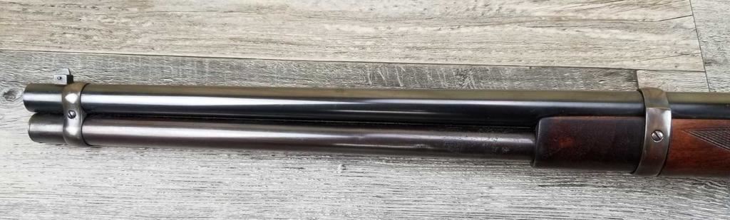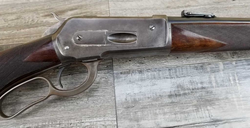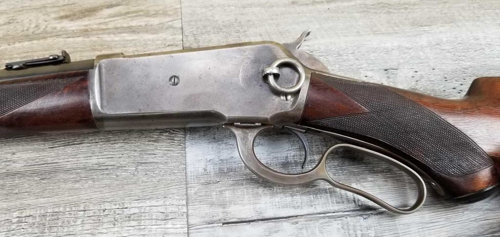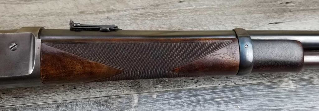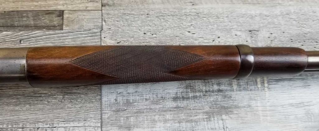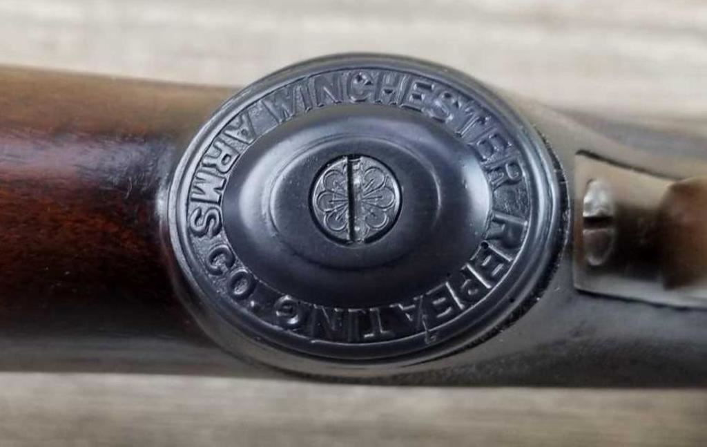 NICE 50 EXPRESS. WITH LATER ACCOMPLISHED BLUE TO BARREL AND MAGAZINE TUBE. CASE HARDENED FRAME HAS TURNED SILVERY-GRAY. STOCK SHOWS GOOD QUALITY RECHECKERING. NICE ACTION, BRIGHT BORE.