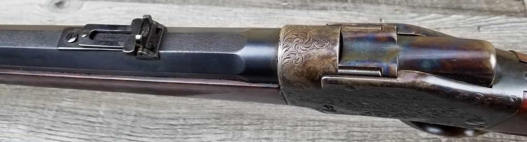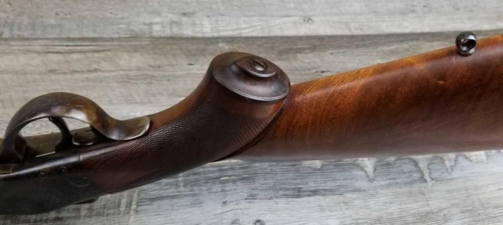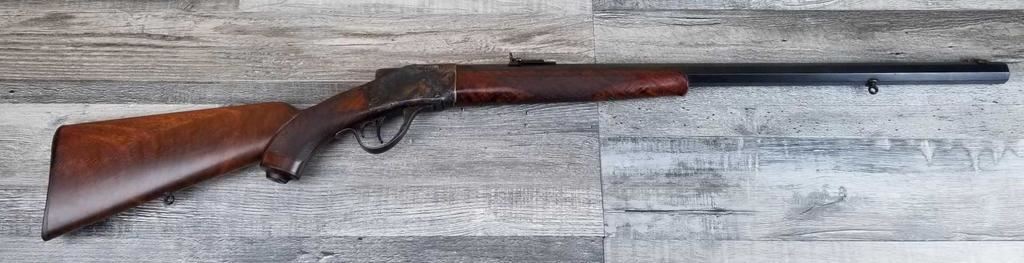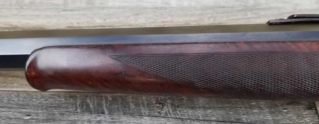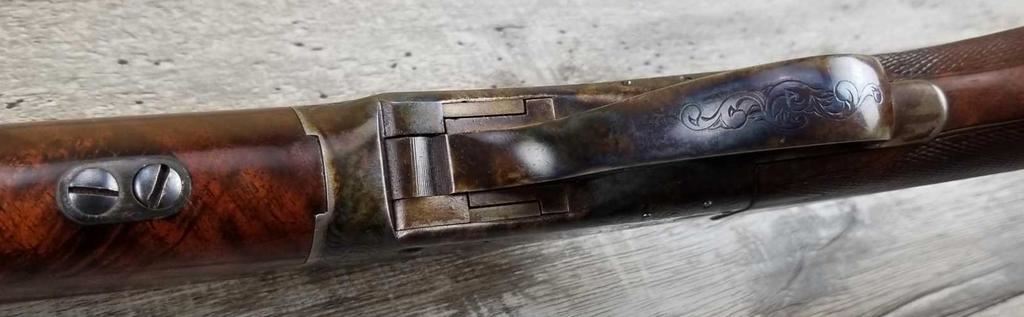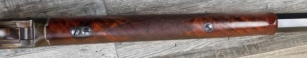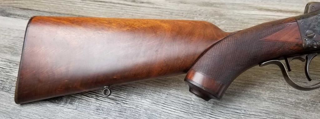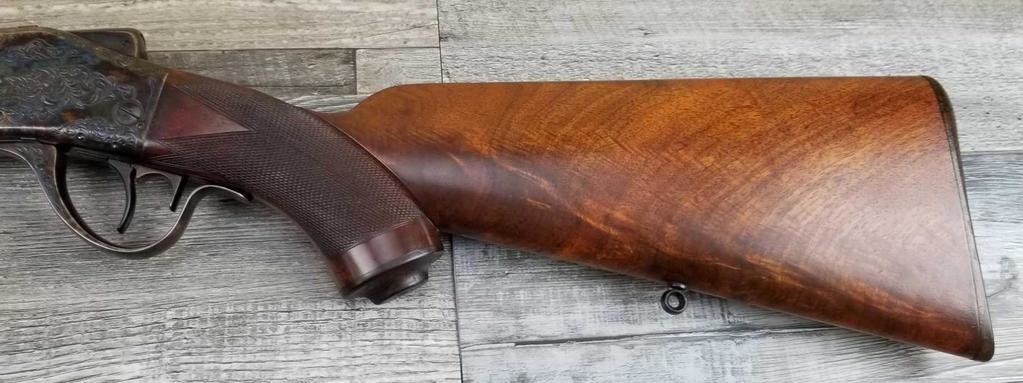 EXCELLENT AS LATE ENHANCED AND ENGRAVED. WITH GOOD QUALITY BANK NOTE SCROLLS. NICELY REDONE STOCK AND FOREHAND WITH ONE REPAIR TO LEFT SIDE AT WRIST. BORE IS VERY NICE.